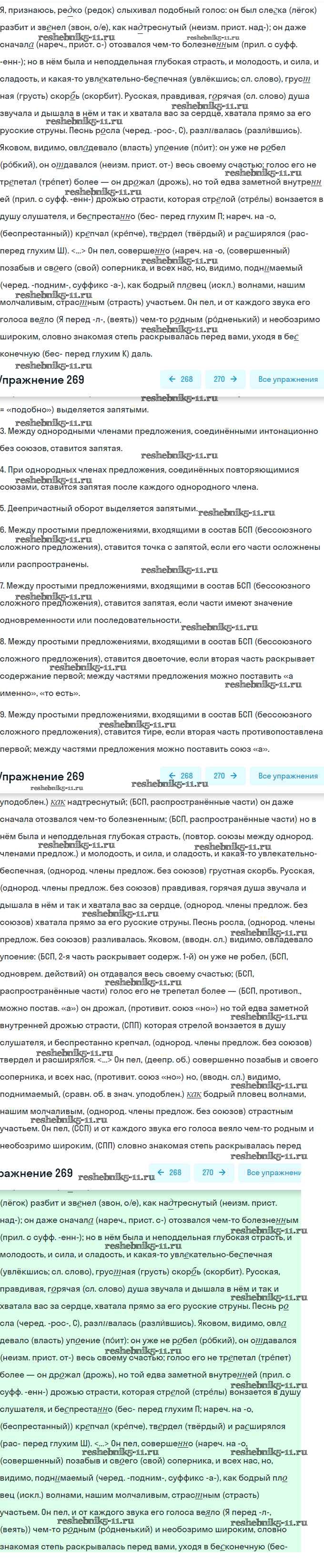 Готовая домашняя работа с ответами по Русскому языку за 9 класс Пичугов, Еремеева, Купалова Практика Просвещение 2022 - Упражнения 269