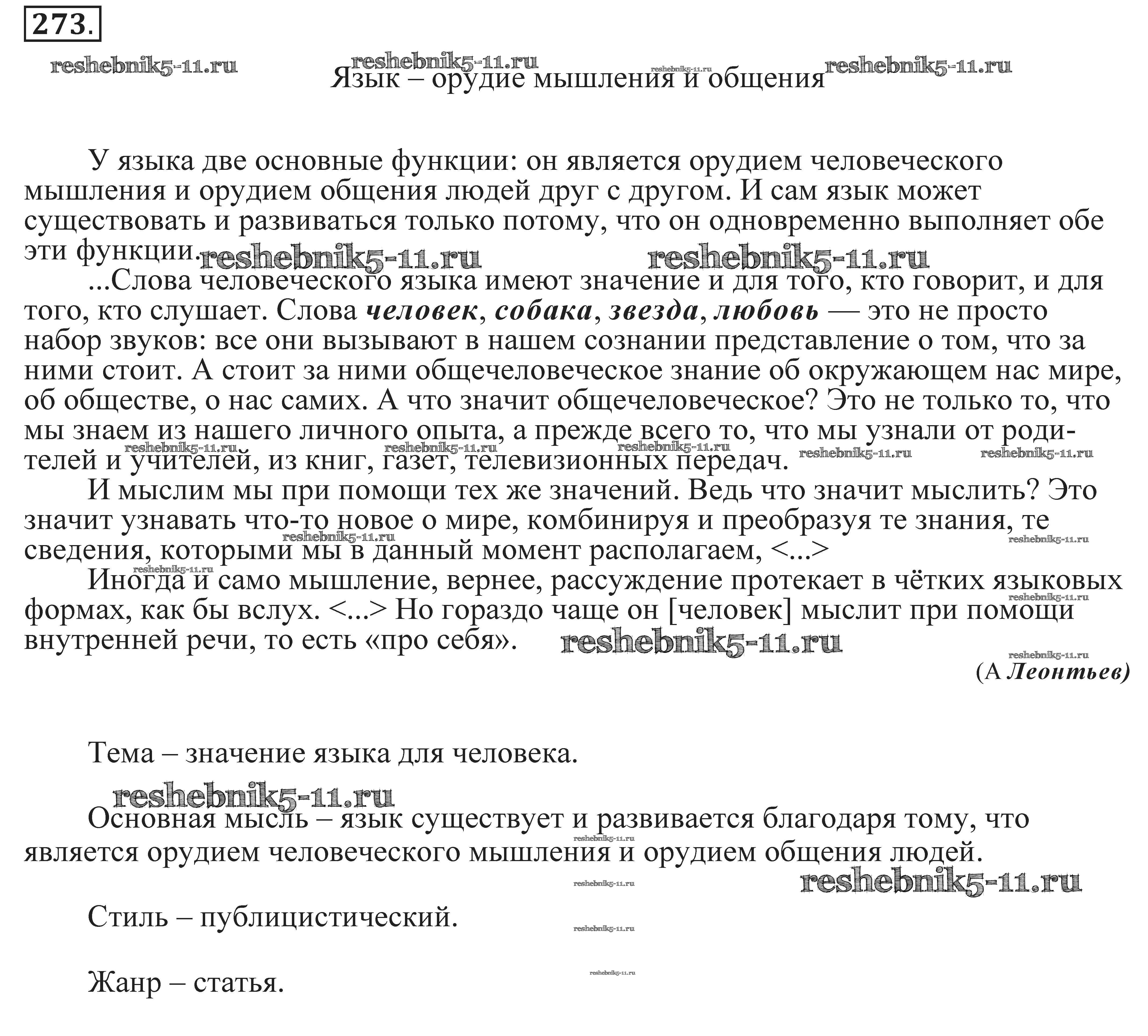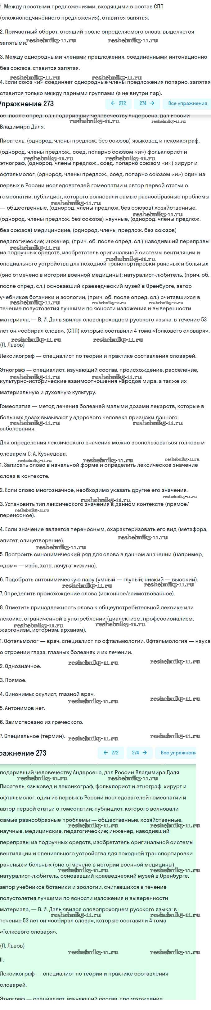 Готовая домашняя работа с ответами по Русскому языку за 9 класс Пичугов, Еремеева, Купалова Практика Просвещение 2022 - Упражнения 273