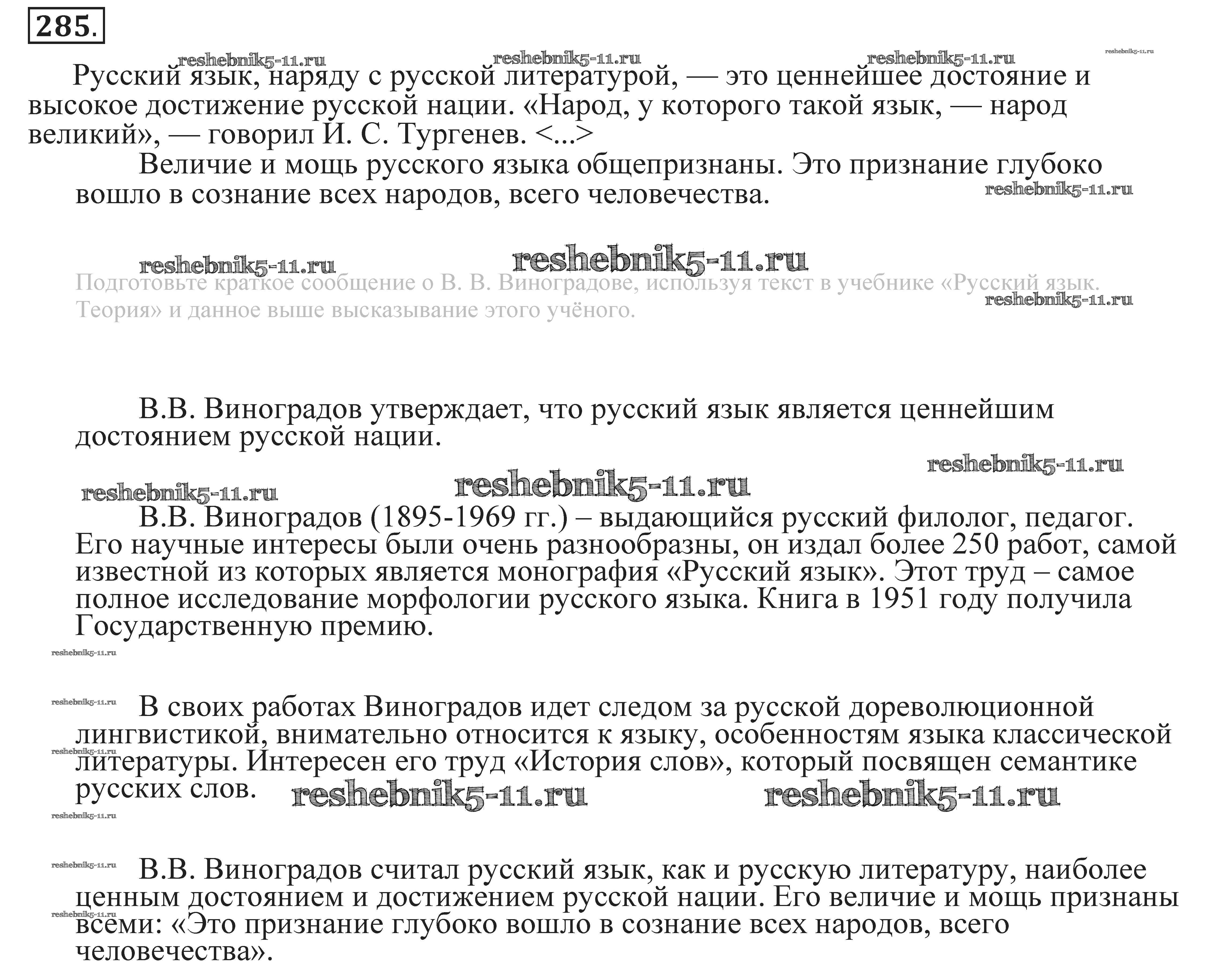 Готовая домашняя работа с ответами по Русскому языку за 9 класс Пичугов, Еремеева, Купалова Практика Просвещение 2022 - Упражнения 285