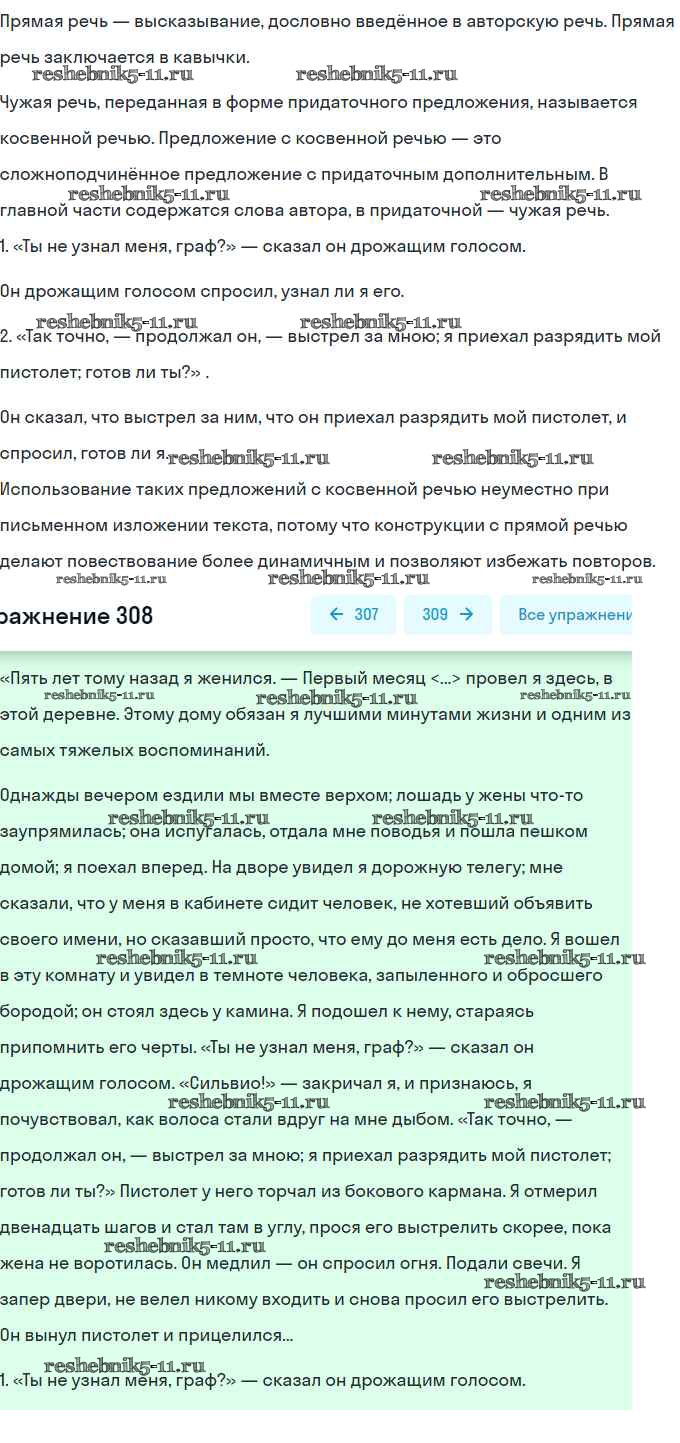Готовая домашняя работа с ответами по Русскому языку за 9 класс Пичугов, Еремеева, Купалова Практика Просвещение 2022 - Упражнения 308