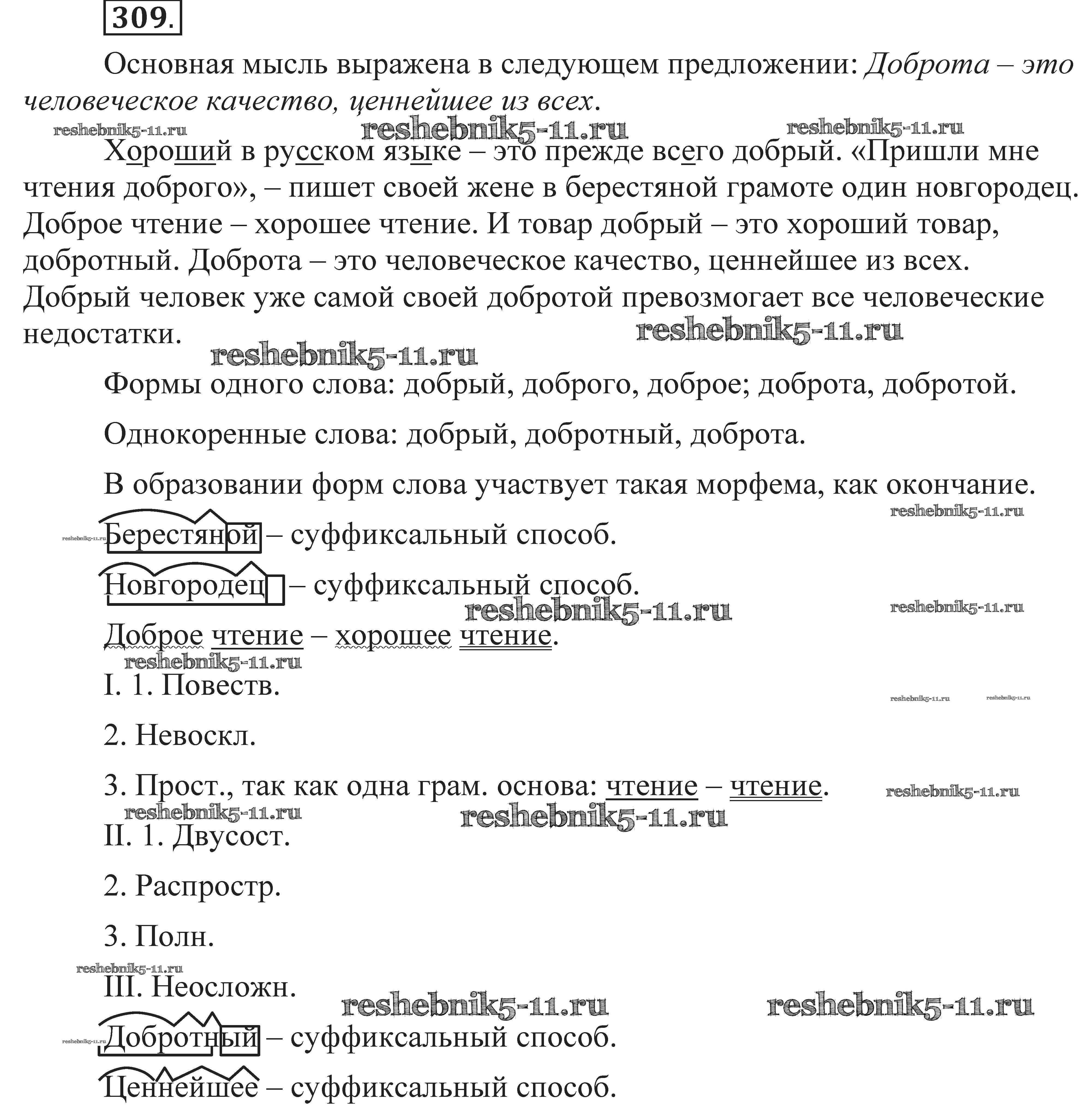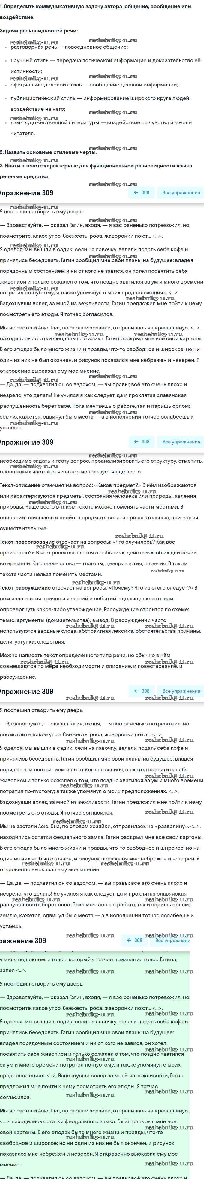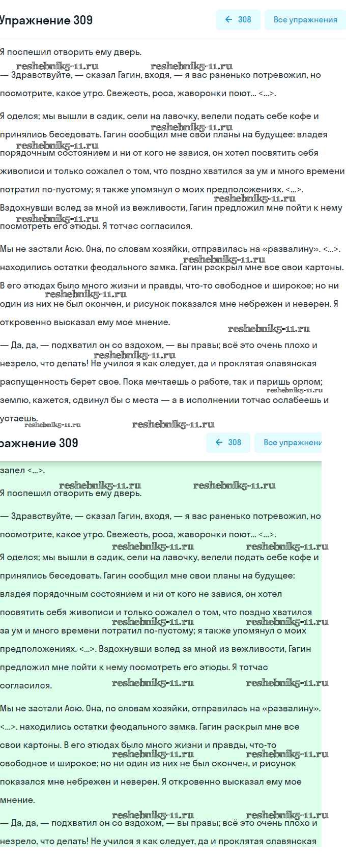 Готовая домашняя работа с ответами по Русскому языку за 9 класс Пичугов, Еремеева, Купалова Практика Просвещение 2022 - Упражнения 309