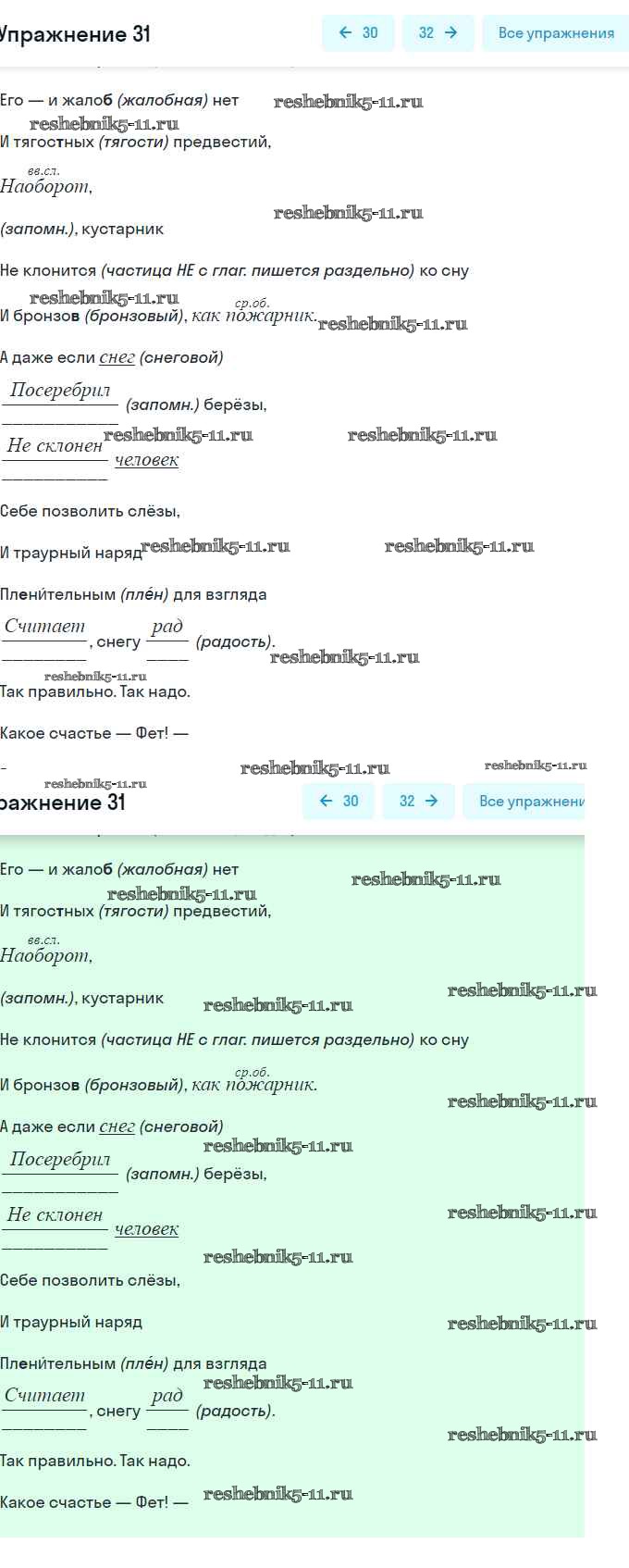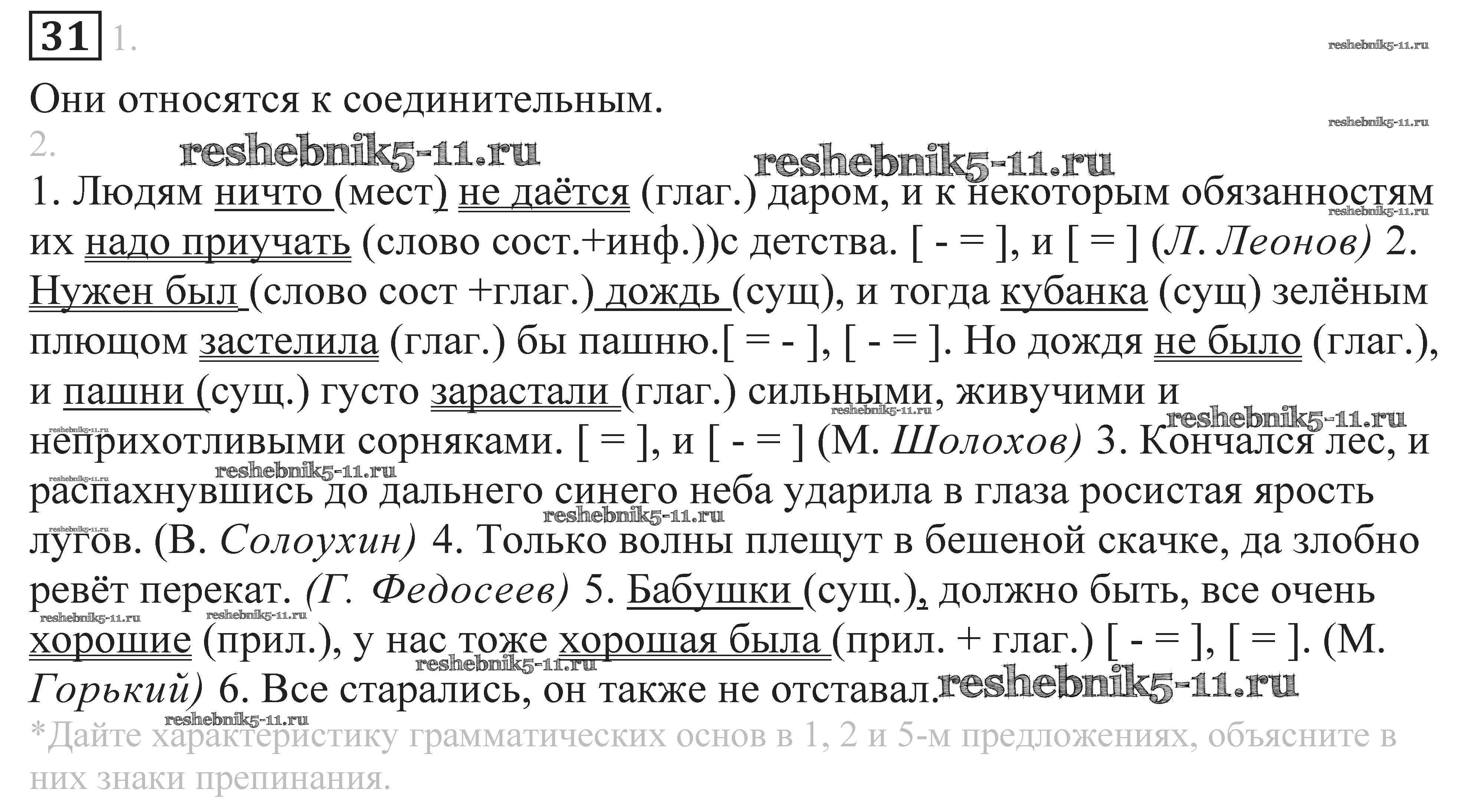 Готовая домашняя работа с ответами по Русскому языку за 9 класс Пичугов, Еремеева, Купалова Практика Просвещение 2022 - Упражнения 31