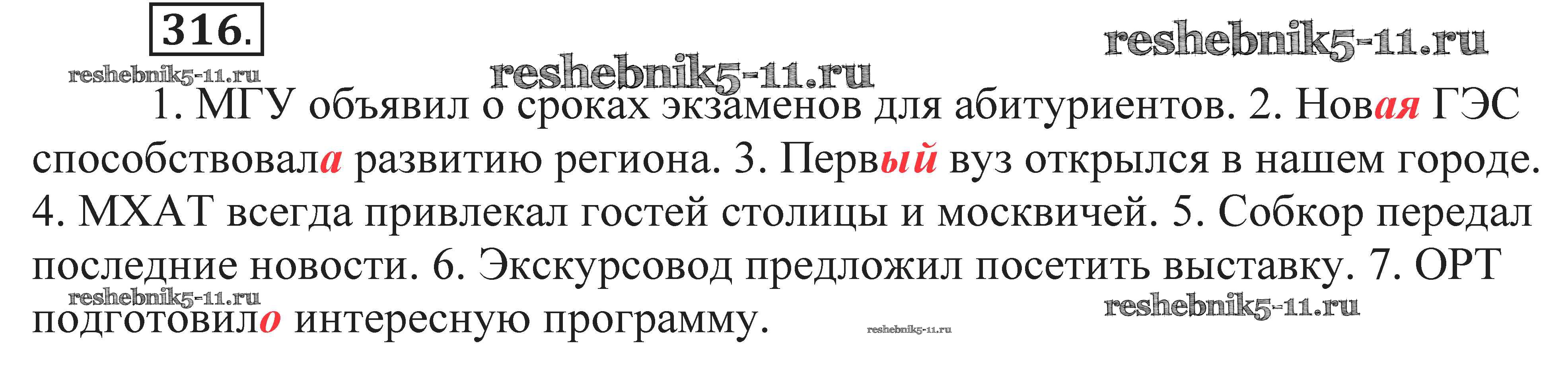 Готовая домашняя работа с ответами по Русскому языку за 9 класс Пичугов, Еремеева, Купалова Практика Просвещение 2022 - Упражнения 316