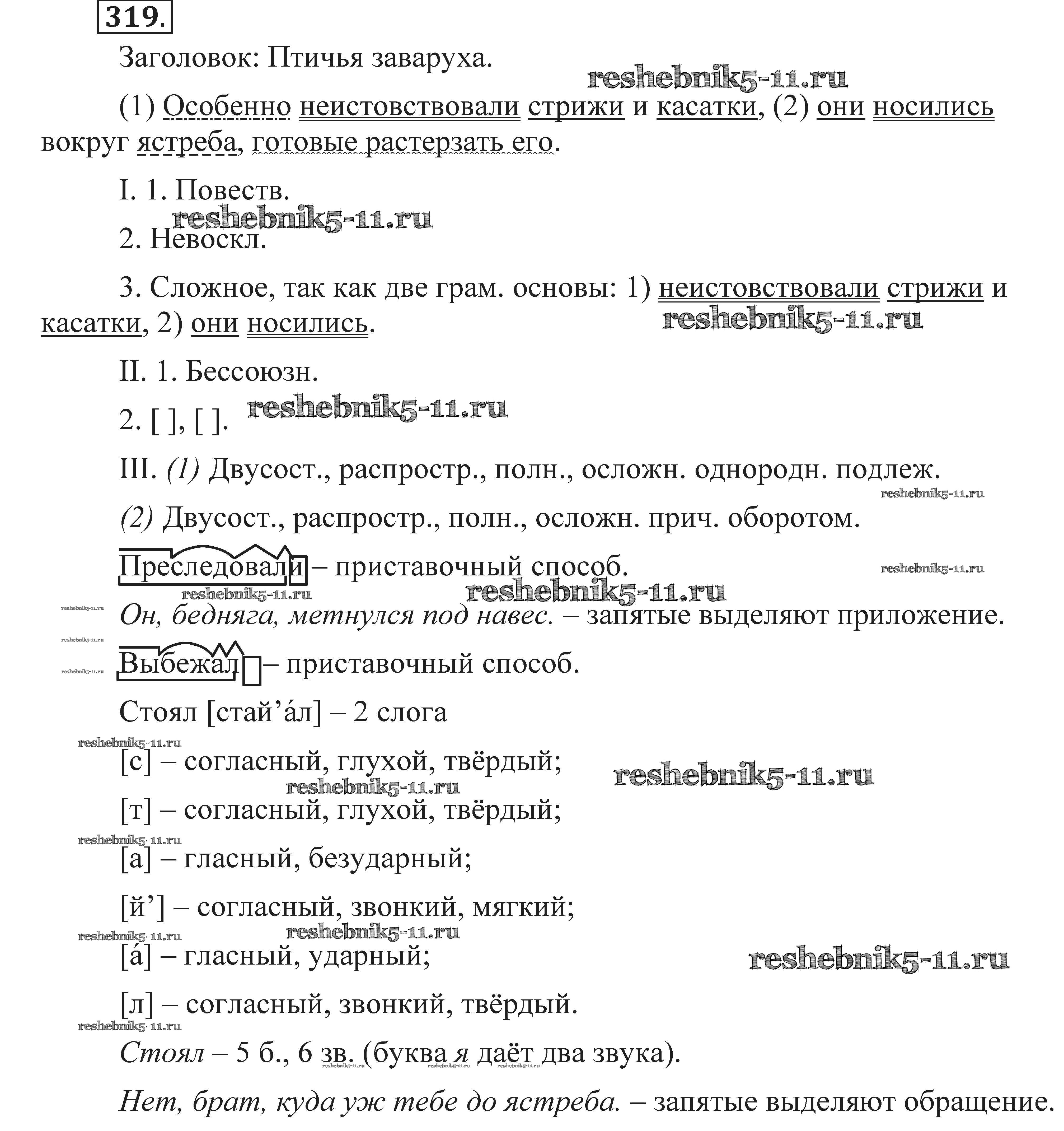 Готовая домашняя работа с ответами по Русскому языку за 9 класс Пичугов, Еремеева, Купалова Практика Просвещение 2022 - Упражнения 319