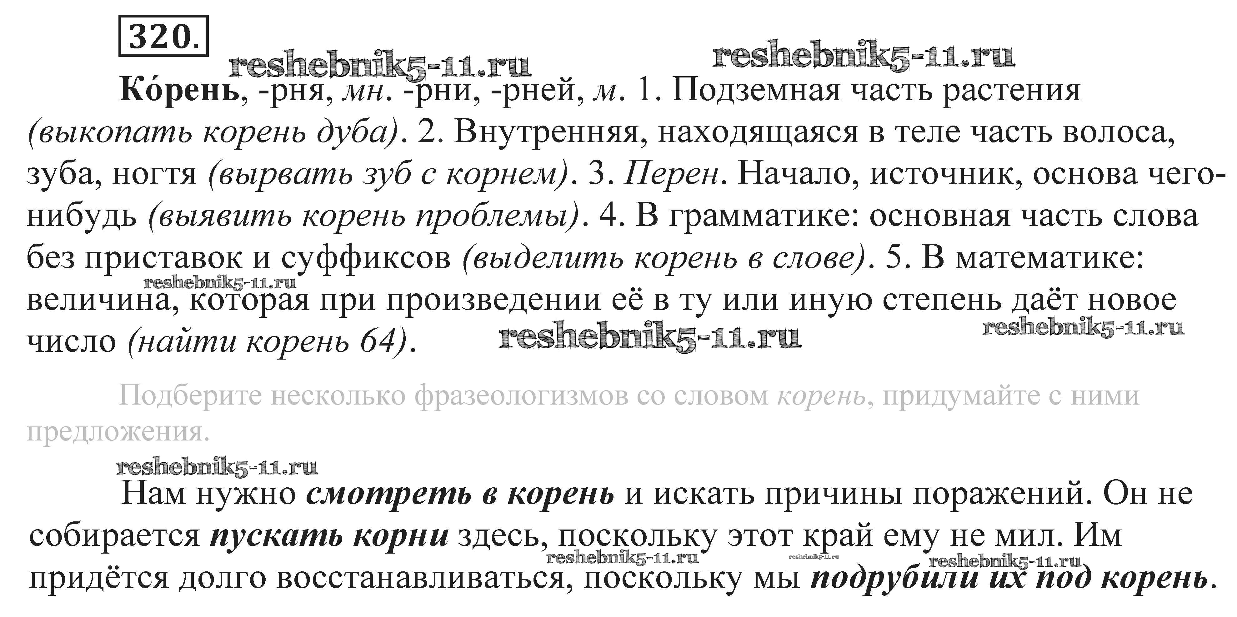 Готовая домашняя работа с ответами по Русскому языку за 9 класс Пичугов, Еремеева, Купалова Практика Просвещение 2022 - Упражнения 320