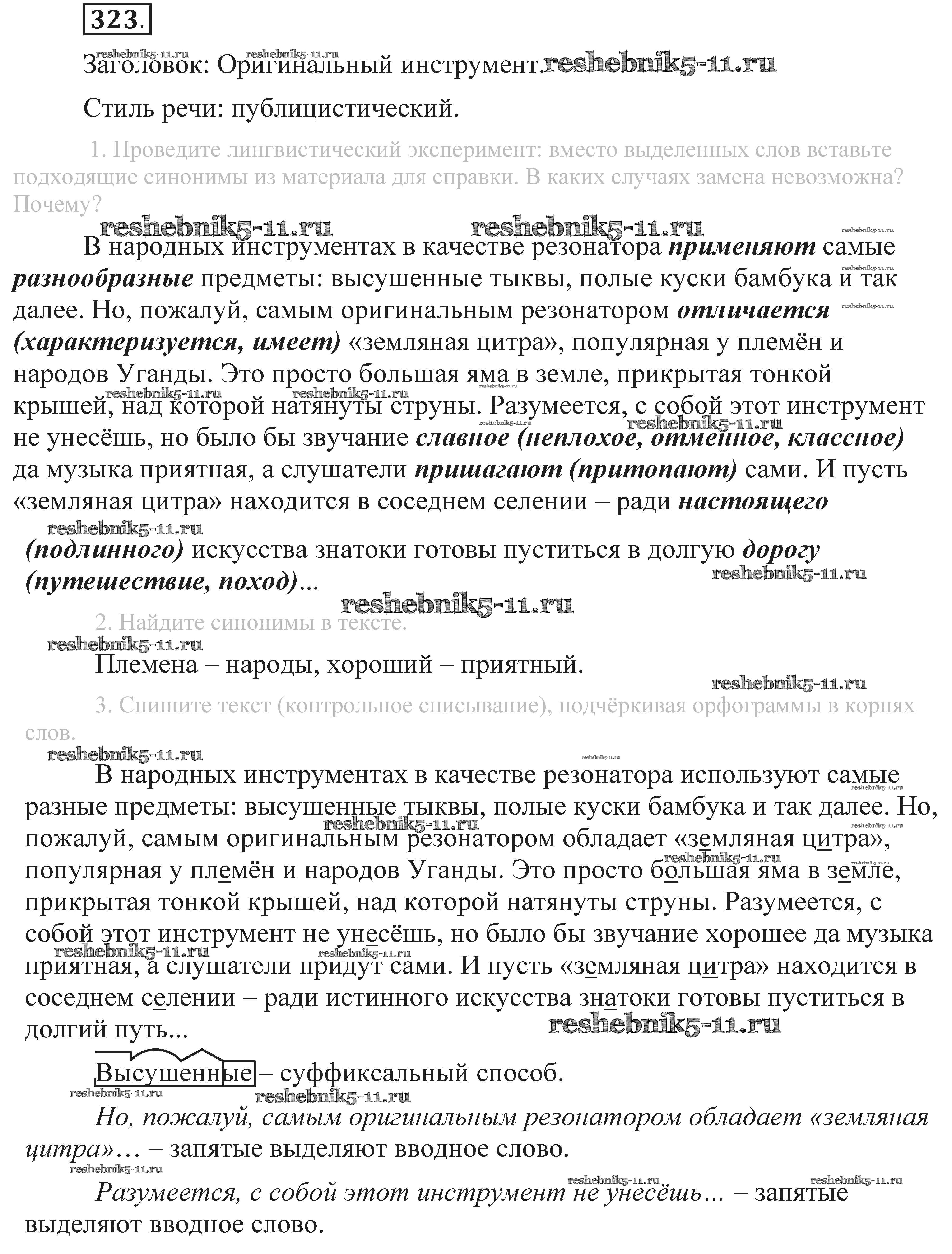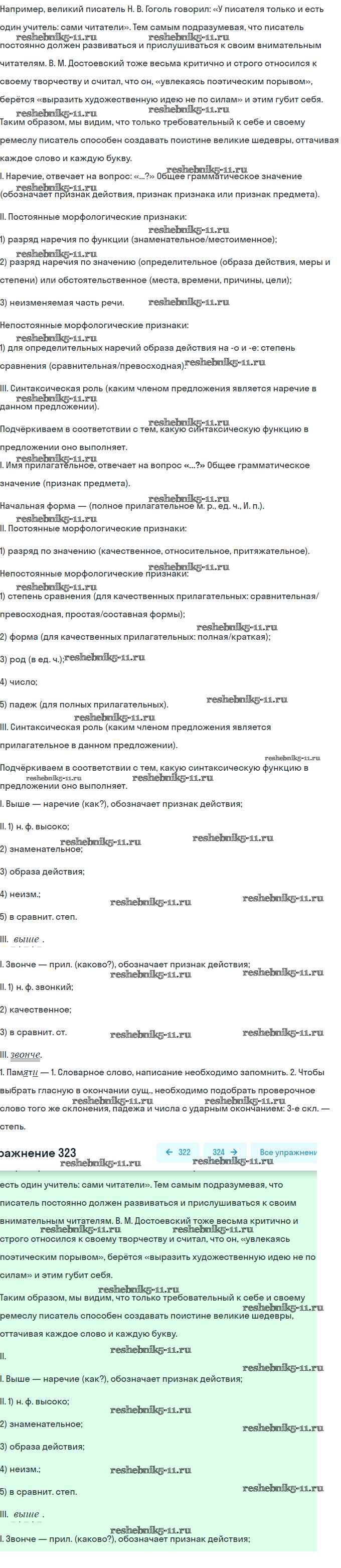 Готовая домашняя работа с ответами по Русскому языку за 9 класс Пичугов, Еремеева, Купалова Практика Просвещение 2022 - Упражнения 323