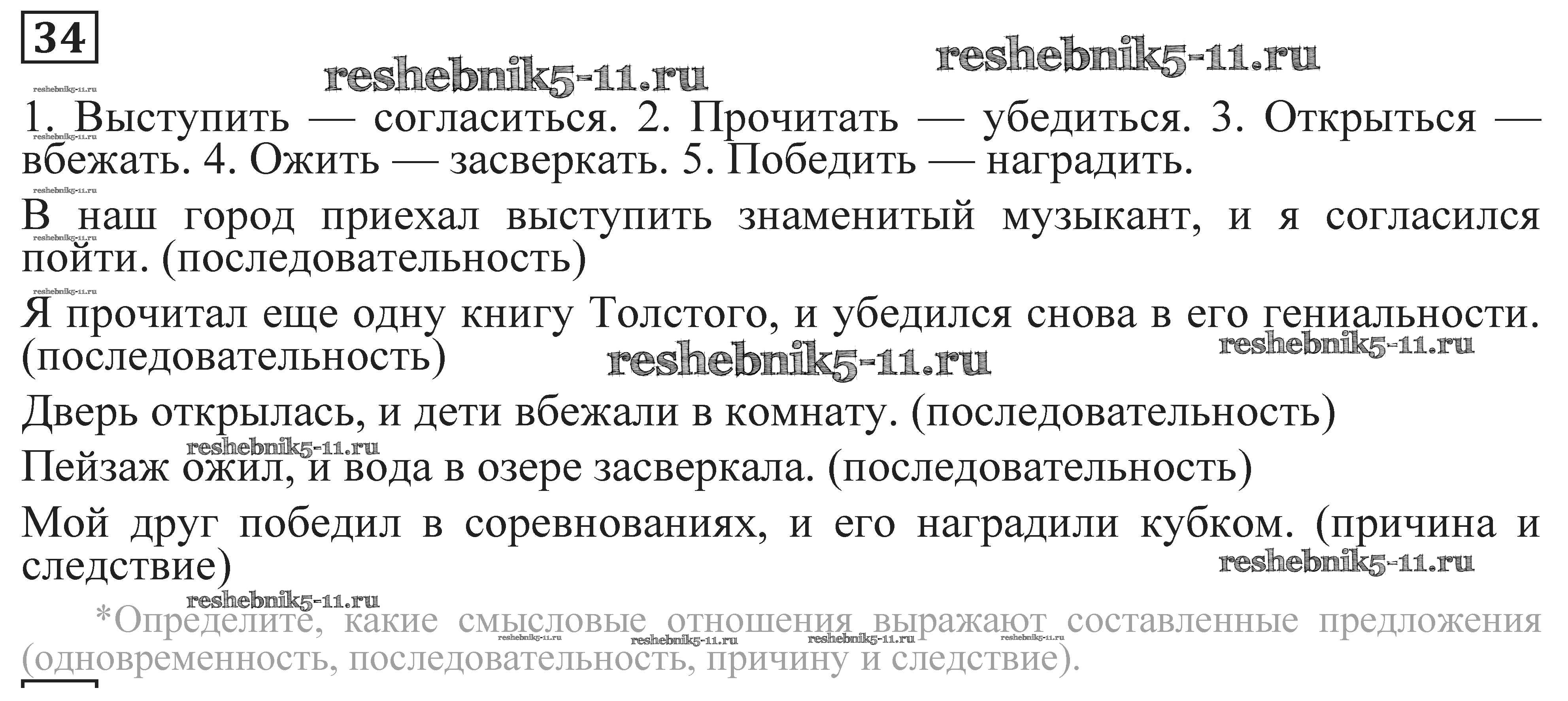 Готовая домашняя работа с ответами по Русскому языку за 9 класс Пичугов, Еремеева, Купалова Практика Просвещение 2022 - Упражнения 34
