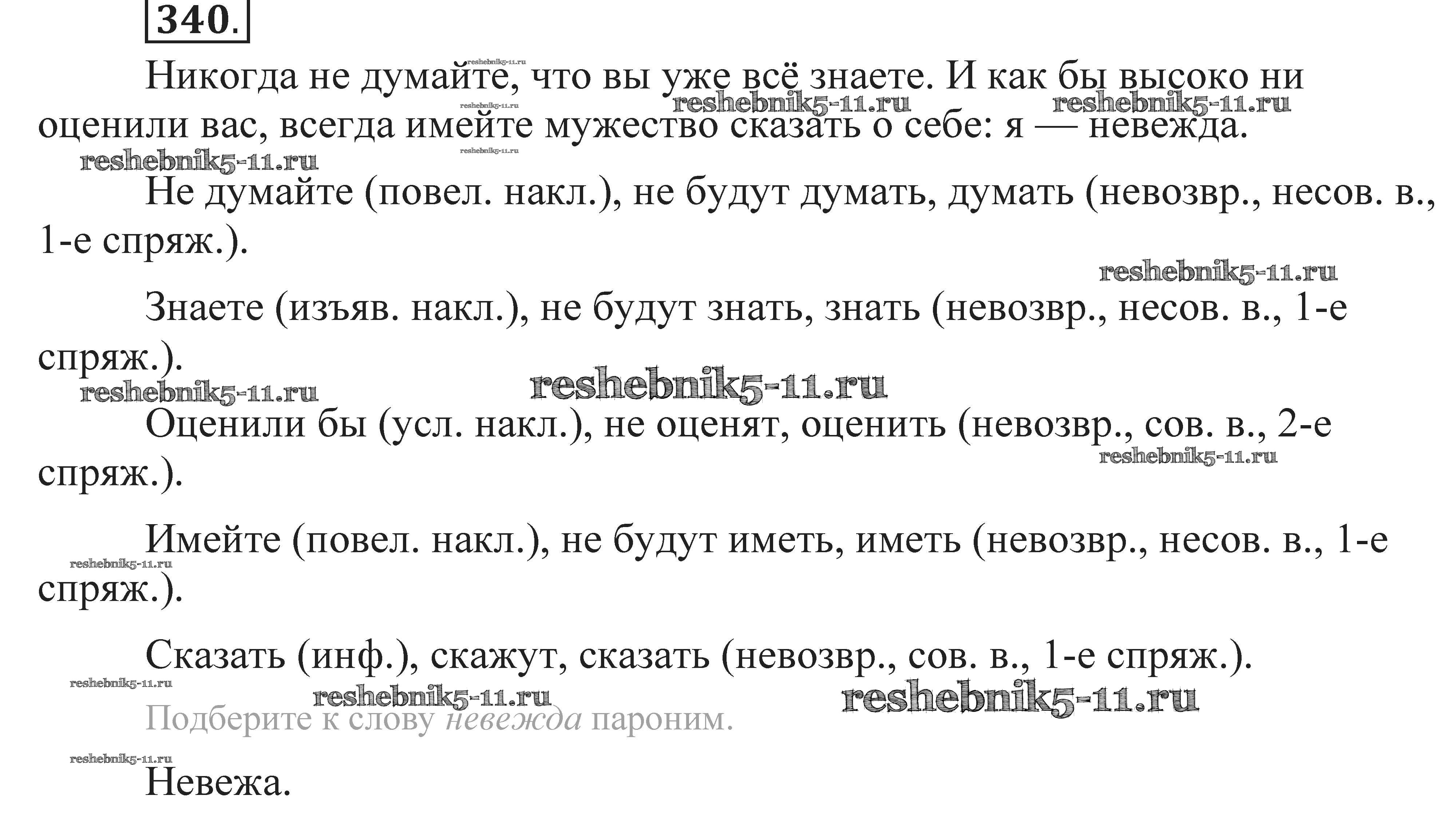 Готовая домашняя работа с ответами по Русскому языку за 9 класс Пичугов, Еремеева, Купалова Практика Просвещение 2022 - Упражнения 340