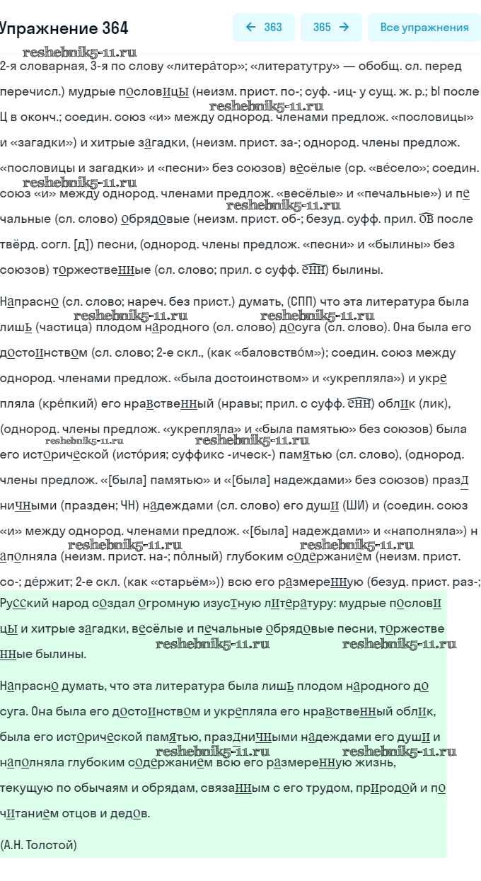 Готовая домашняя работа с ответами по Русскому языку за 9 класс Пичугов, Еремеева, Купалова Практика Просвещение 2022 - Упражнения 364