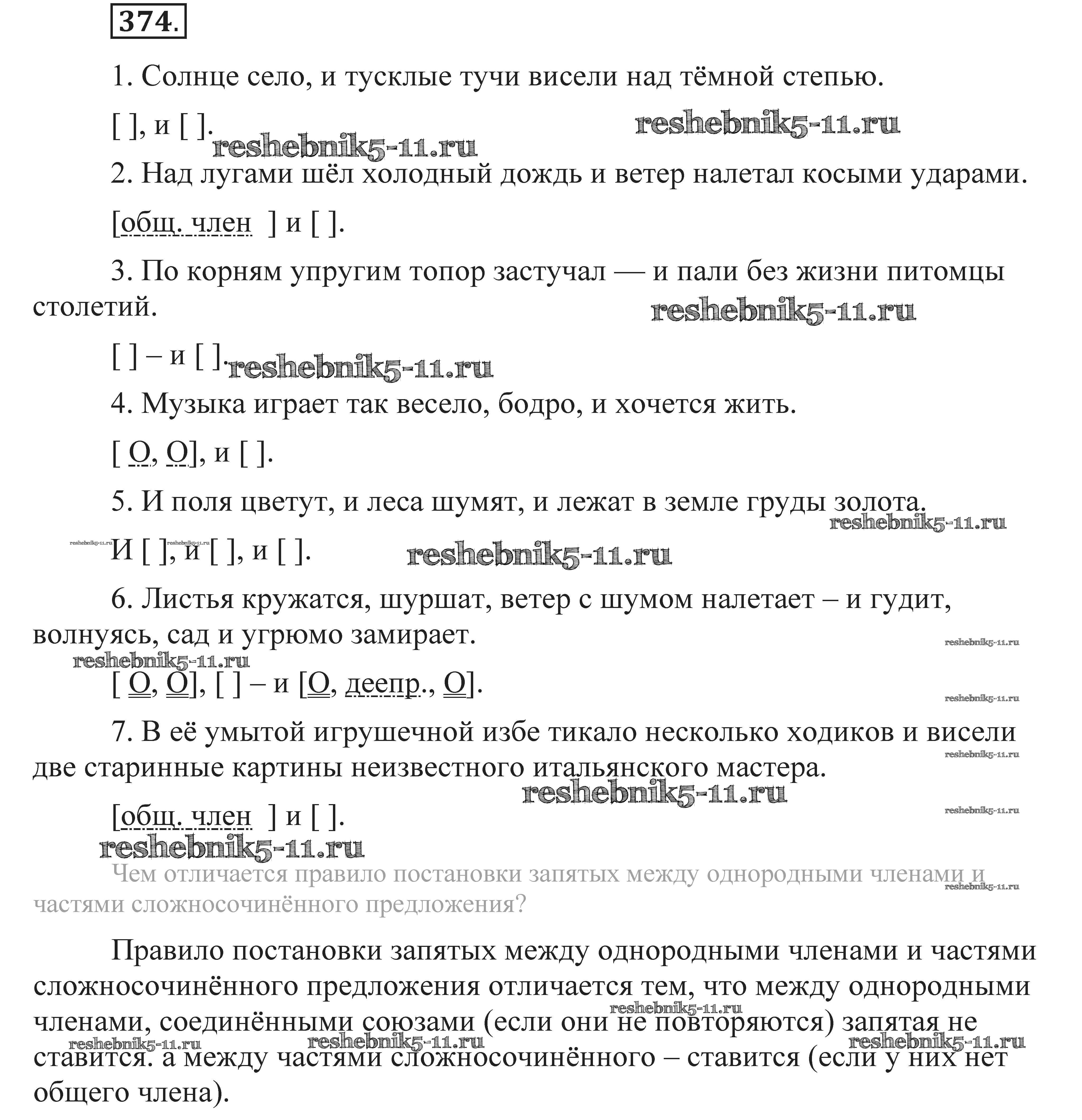 Готовая домашняя работа с ответами по Русскому языку за 9 класс Пичугов, Еремеева, Купалова Практика Просвещение 2022 - Упражнения 374