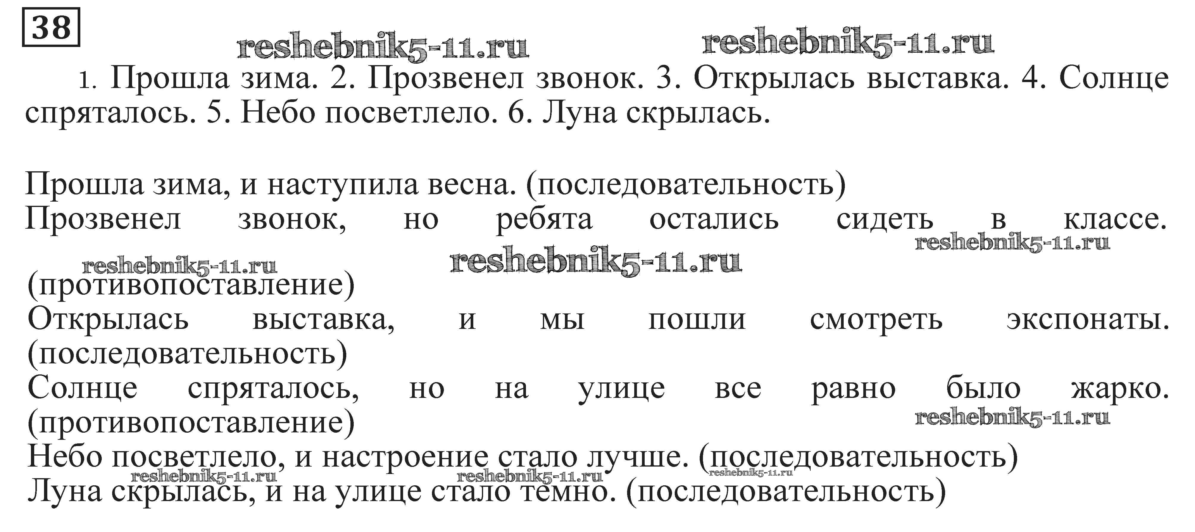 Готовая домашняя работа с ответами по Русскому языку за 9 класс Пичугов, Еремеева, Купалова Практика Просвещение 2022 - Упражнения 38