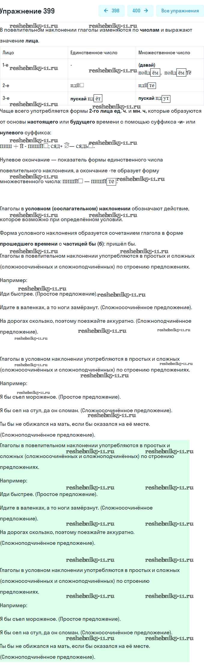 Готовая домашняя работа с ответами по Русскому языку за 9 класс Пичугов, Еремеева, Купалова Практика Просвещение 2022 - Упражнения 399