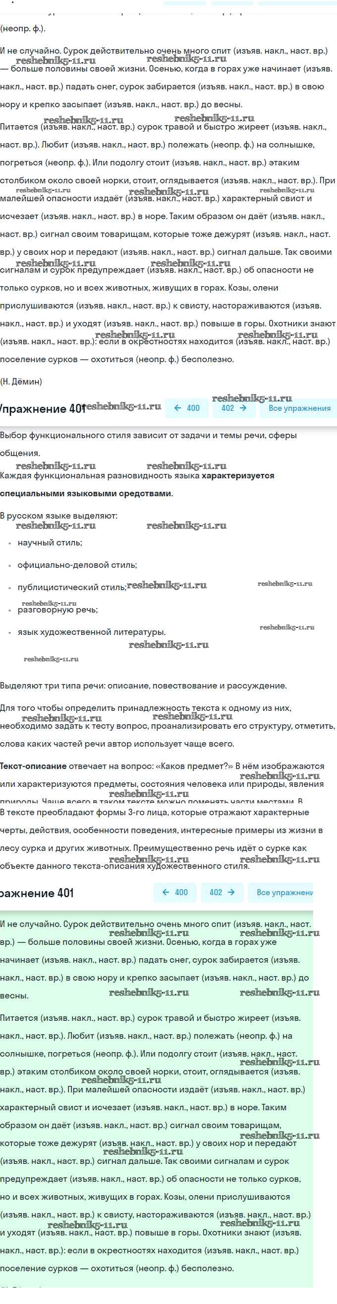Готовая домашняя работа с ответами по Русскому языку за 9 класс Пичугов, Еремеева, Купалова Практика Просвещение 2022 - Упражнения 401