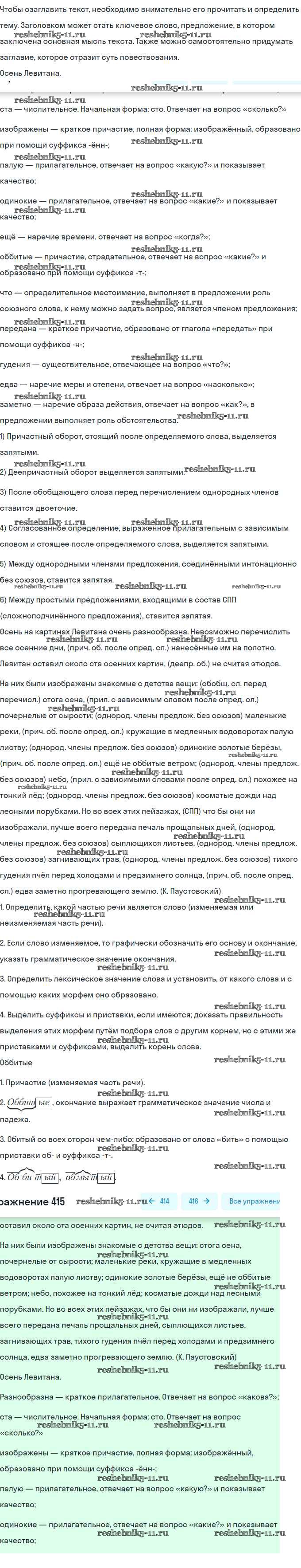 Готовая домашняя работа с ответами по Русскому языку за 9 класс Пичугов, Еремеева, Купалова Практика Просвещение 2022 - Упражнения 415