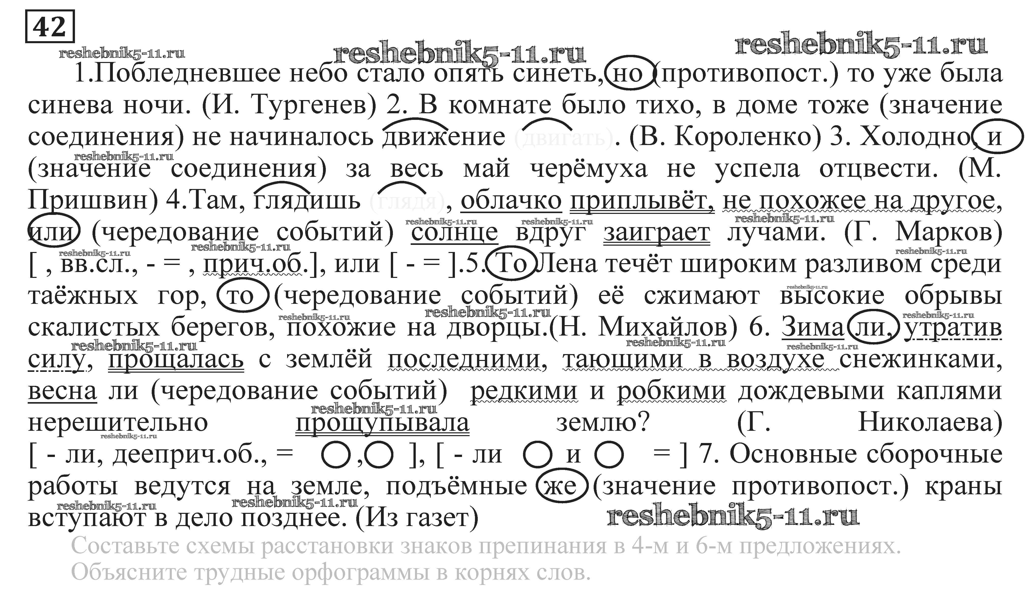 Готовая домашняя работа с ответами по Русскому языку за 9 класс Пичугов, Еремеева, Купалова Практика Просвещение 2022 - Упражнения 42