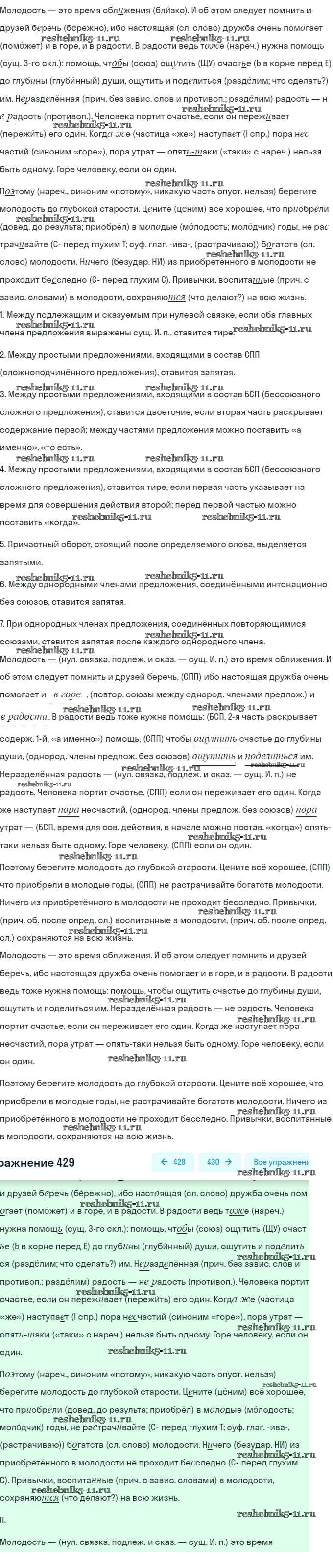 Готовая домашняя работа с ответами по Русскому языку за 9 класс Пичугов, Еремеева, Купалова Практика Просвещение 2022 - Упражнения 429