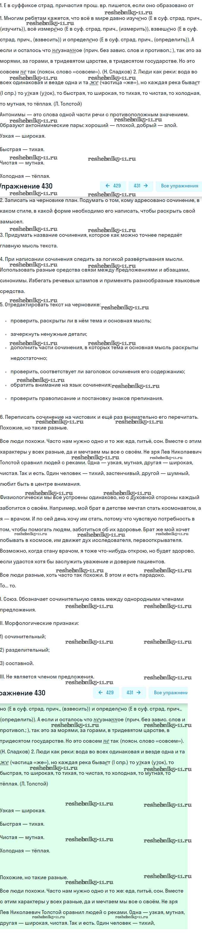 Готовая домашняя работа с ответами по Русскому языку за 9 класс Пичугов, Еремеева, Купалова Практика Просвещение 2022 - Упражнения 430