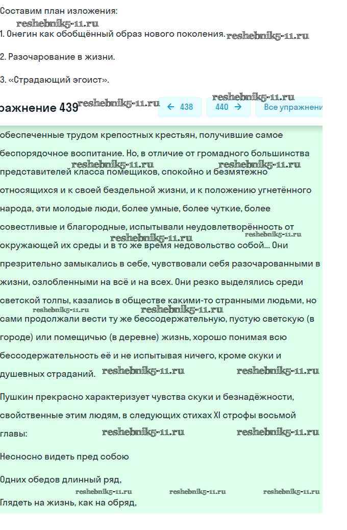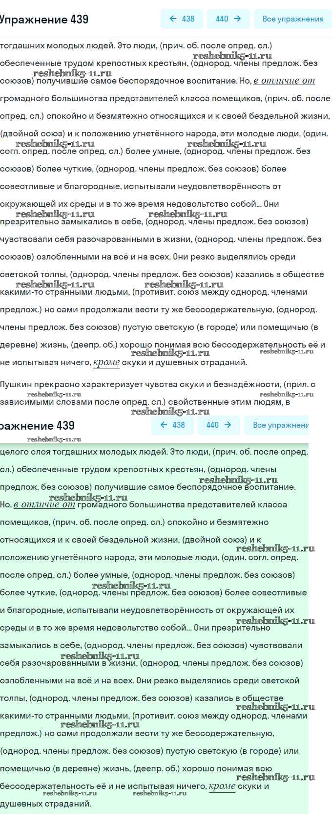 Готовая домашняя работа с ответами по Русскому языку за 9 класс Пичугов, Еремеева, Купалова Практика Просвещение 2022 - Упражнения 439