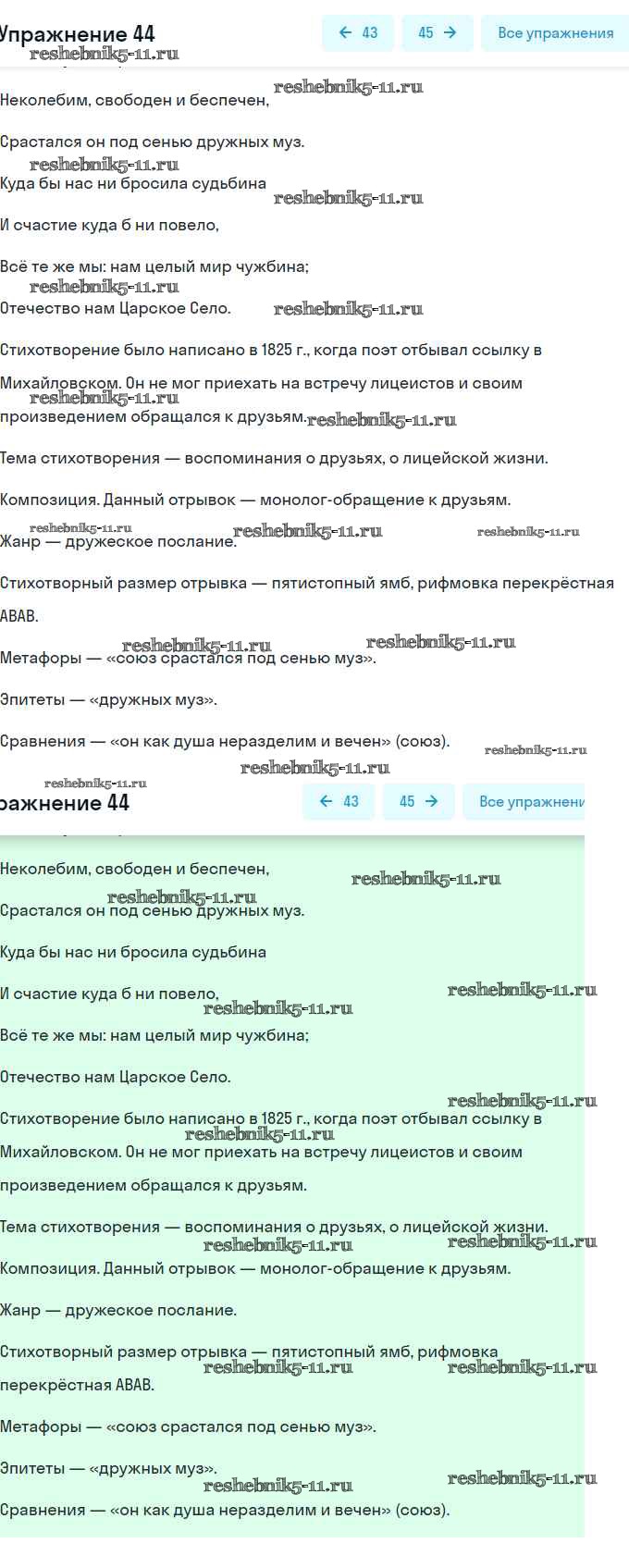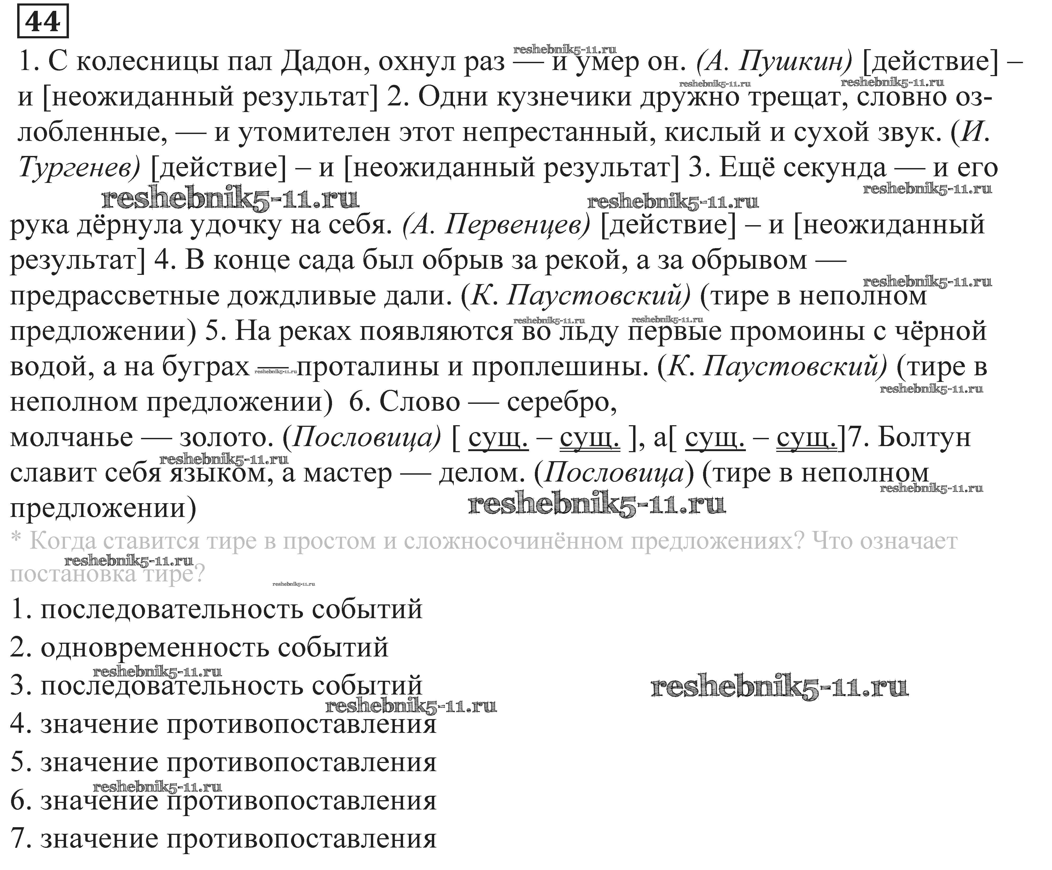 Готовая домашняя работа с ответами по Русскому языку за 9 класс Пичугов, Еремеева, Купалова Практика Просвещение 2022 - Упражнения 44