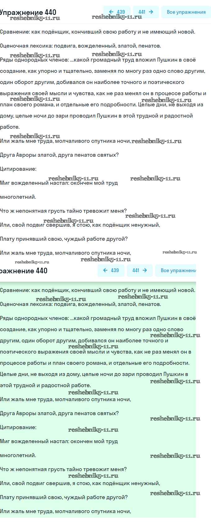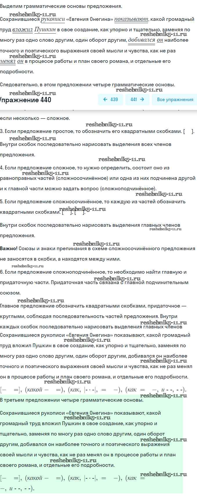 Готовая домашняя работа с ответами по Русскому языку за 9 класс Пичугов, Еремеева, Купалова Практика Просвещение 2022 - Упражнения 440
