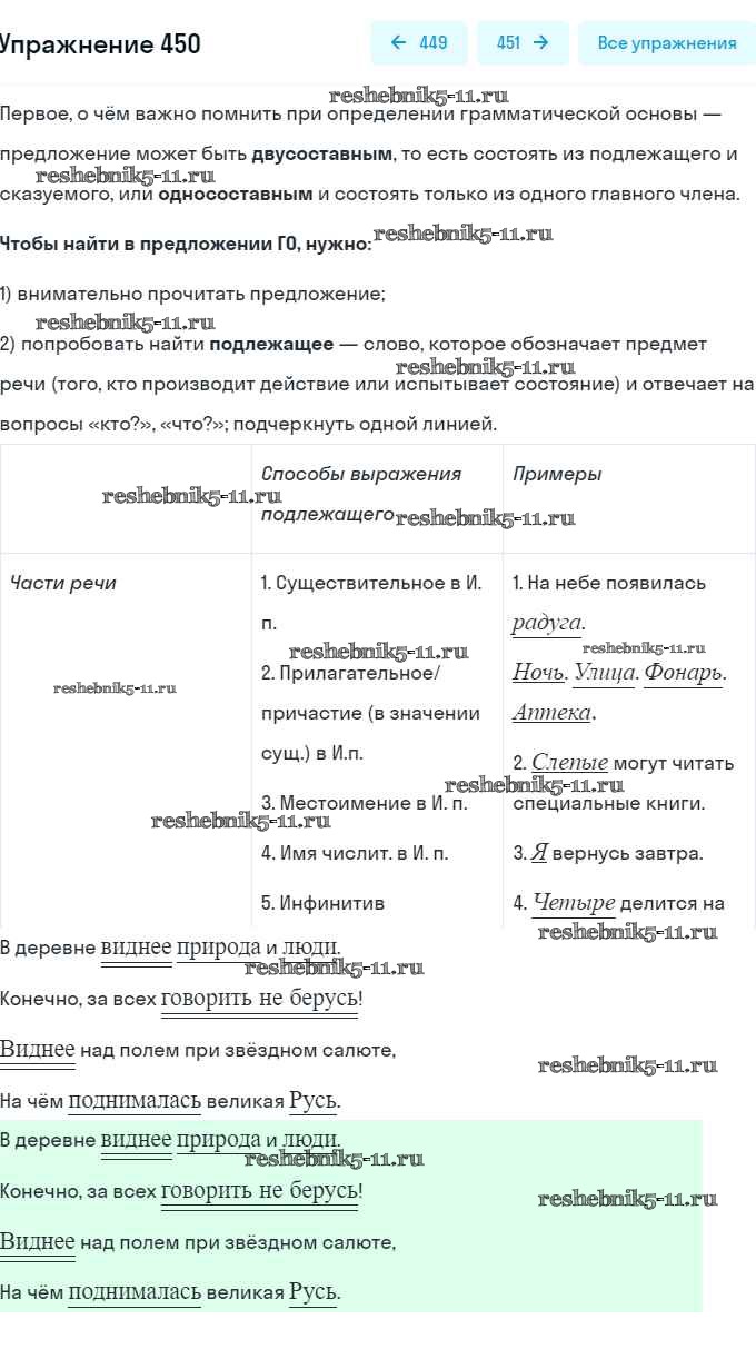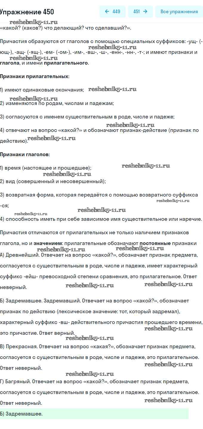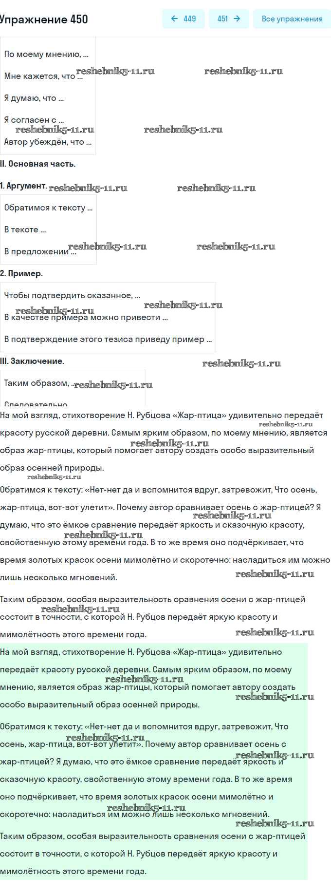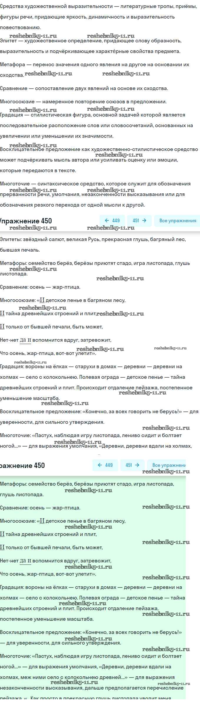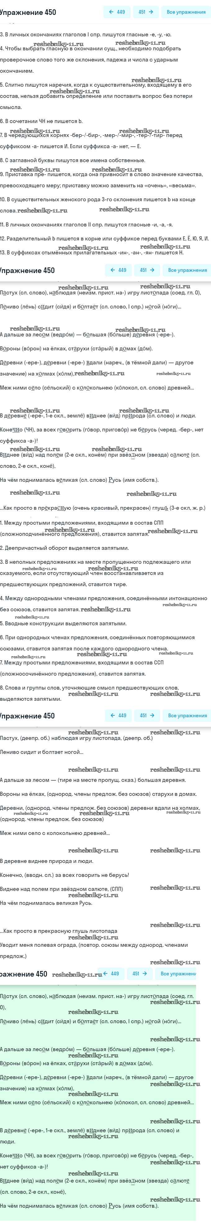Готовая домашняя работа с ответами по Русскому языку за 9 класс Пичугов, Еремеева, Купалова Практика Просвещение 2022 - Упражнения 450