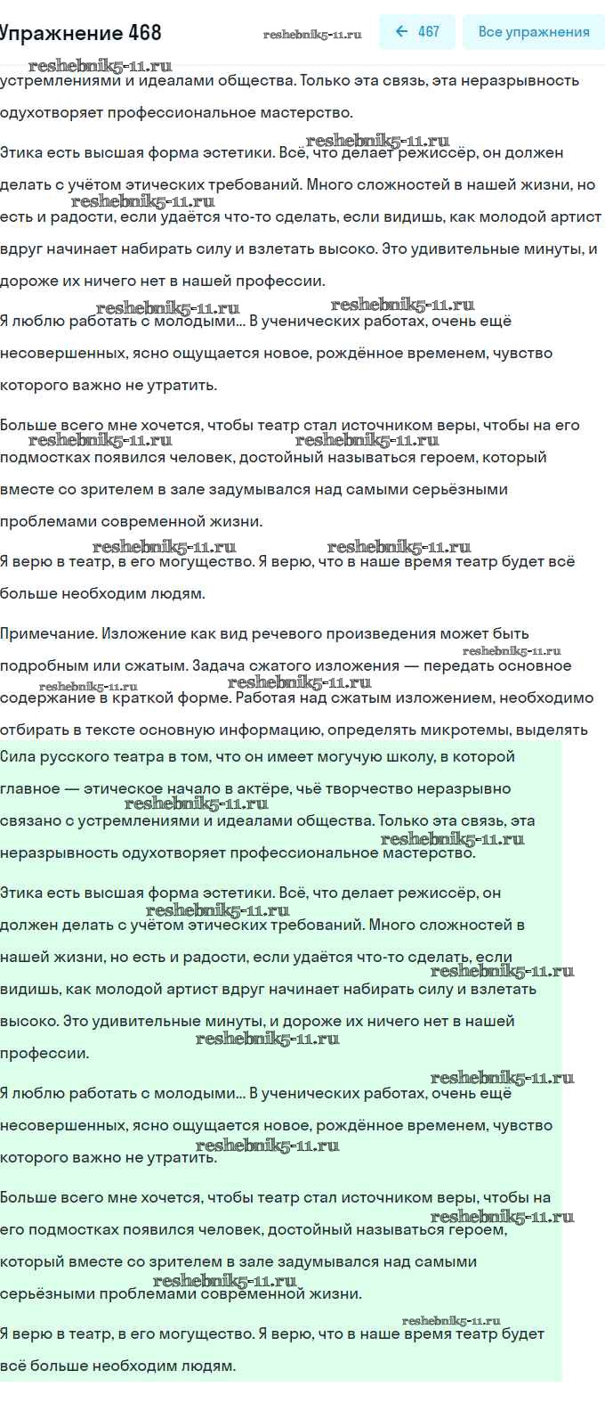 Русский язык за 9 класс Пичугов Практика Просвещение упражнение 468