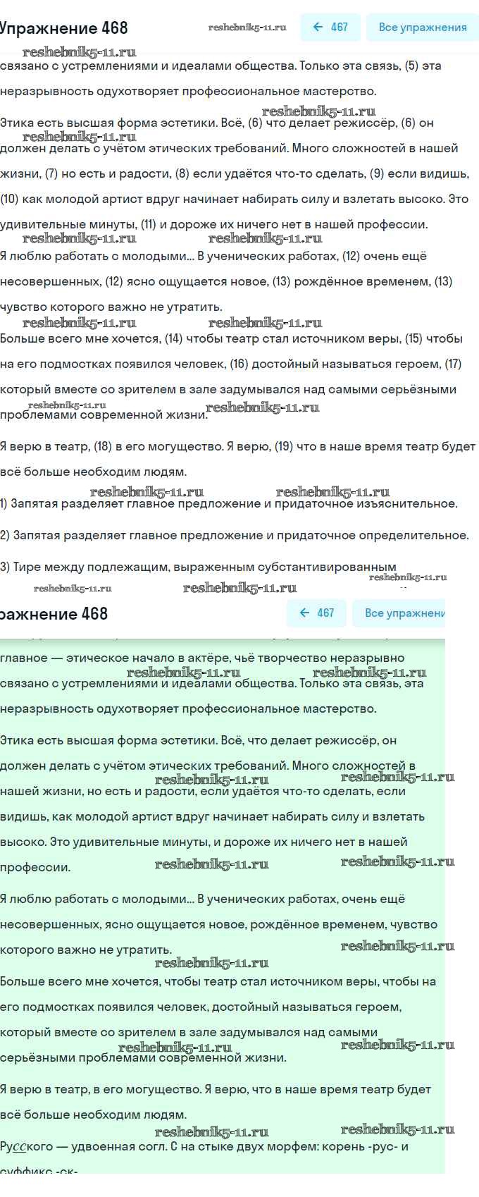 Готовая домашняя работа с ответами по Русскому языку за 9 класс Пичугов, Еремеева, Купалова Практика Просвещение 2022 - Упражнения 468