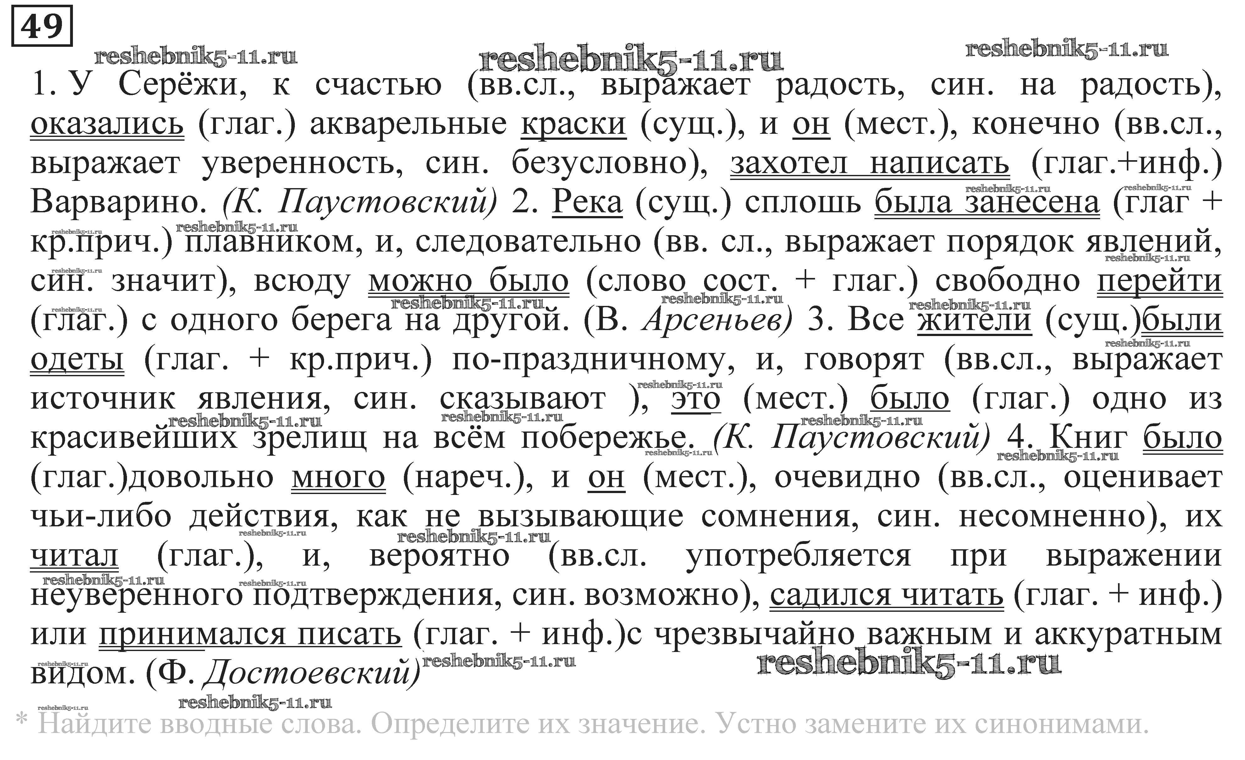 Готовая домашняя работа с ответами по Русскому языку за 9 класс Пичугов, Еремеева, Купалова Практика Просвещение 2022 - Упражнения 49