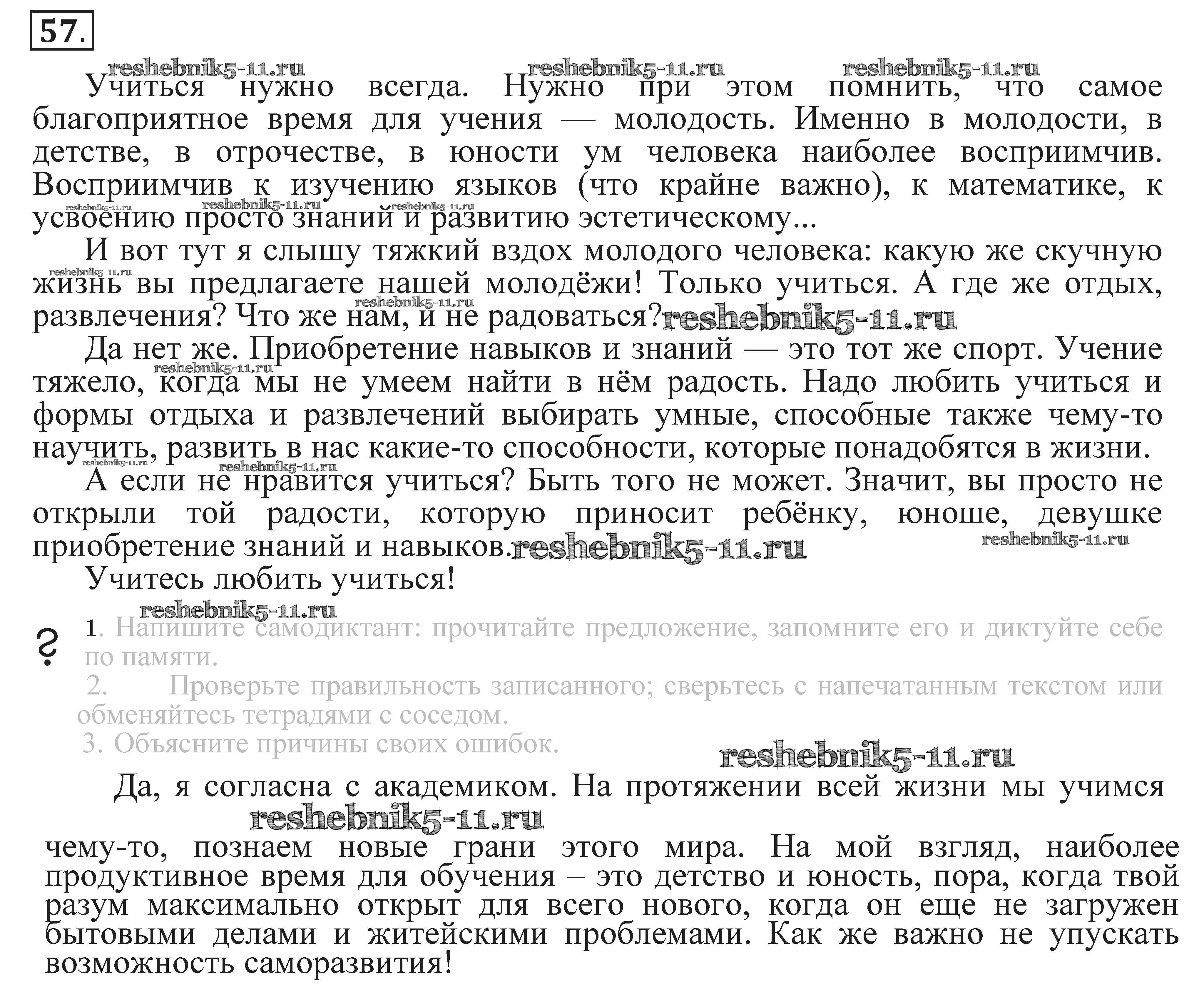 Готовая домашняя работа с ответами по Русскому языку за 9 класс Пичугов, Еремеева, Купалова Практика Просвещение 2022 - Упражнения 57