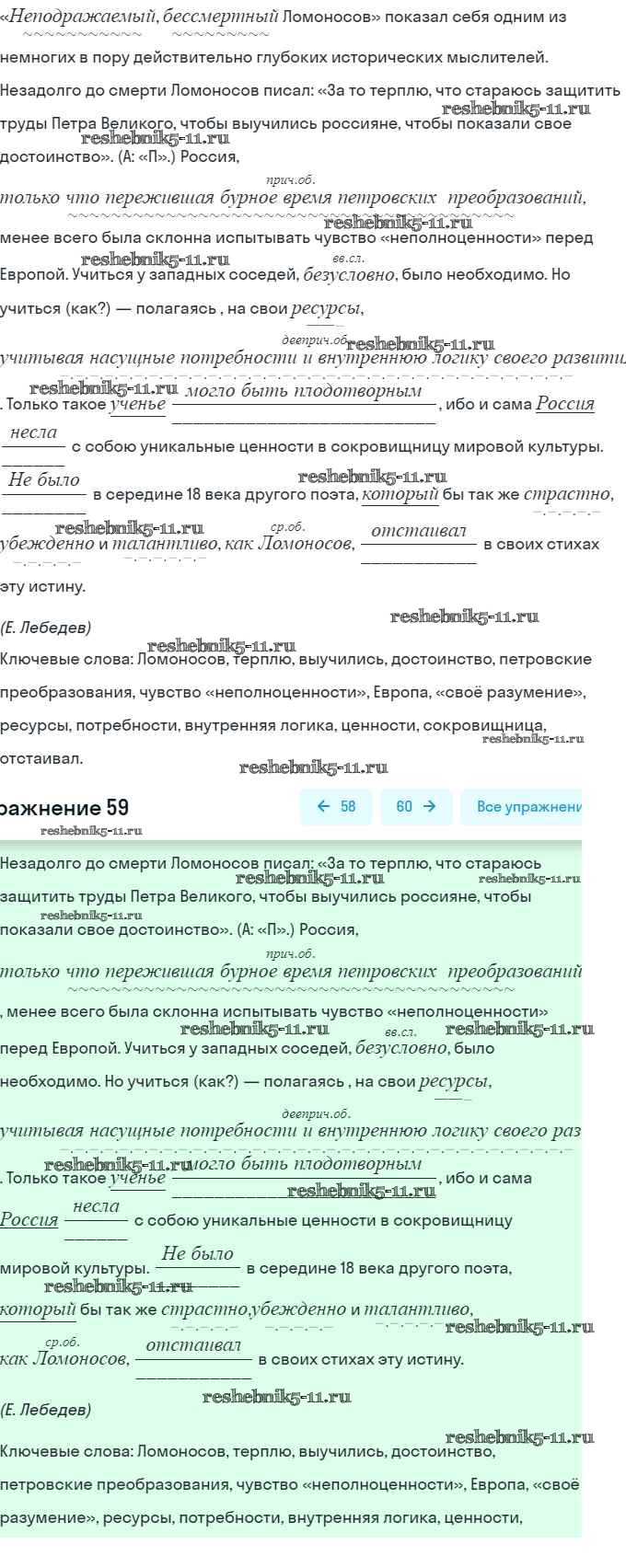 Готовая домашняя работа с ответами по Русскому языку за 9 класс Пичугов, Еремеева, Купалова Практика Просвещение 2022 - Упражнения 59