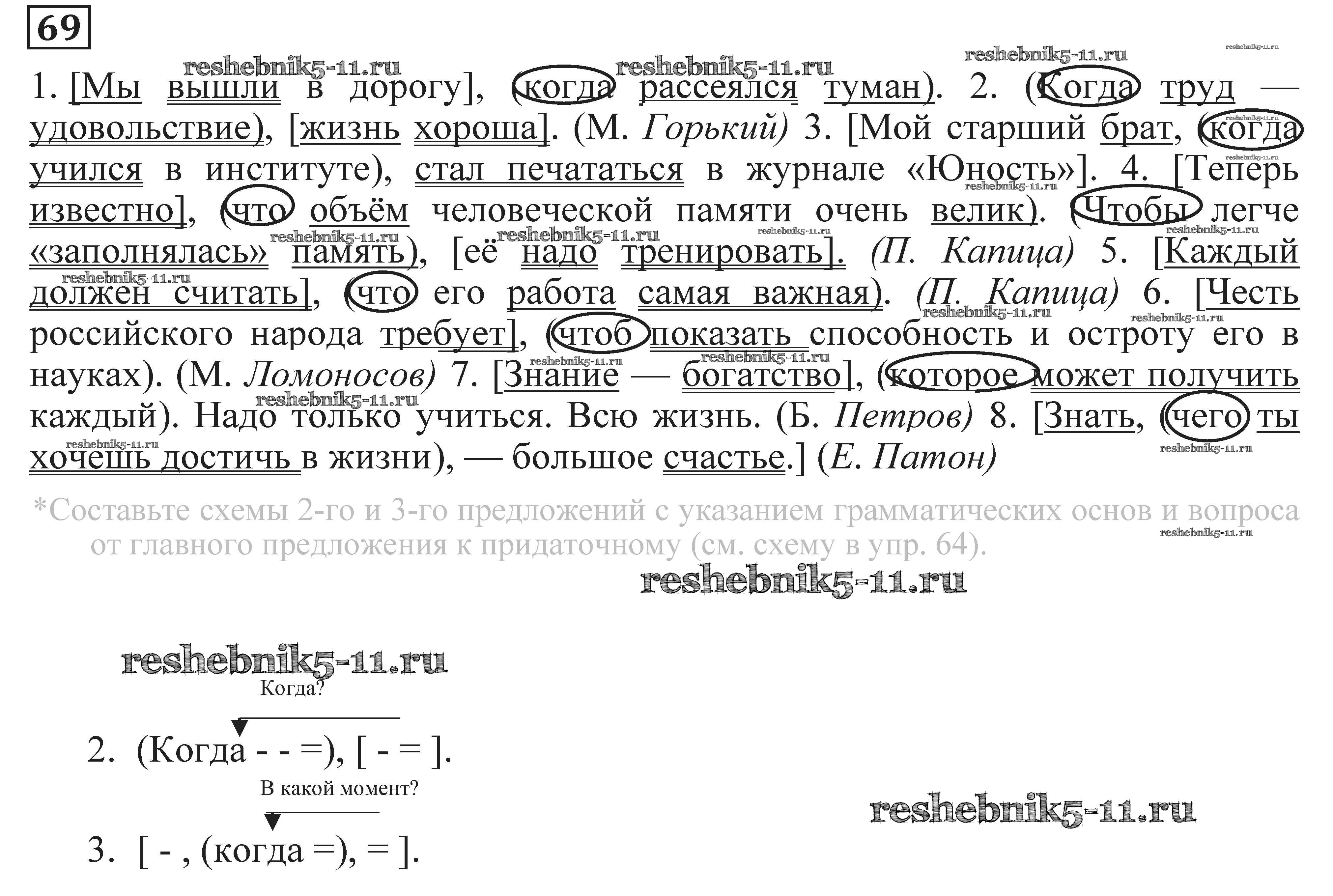 Готовая домашняя работа с ответами по Русскому языку за 9 класс Пичугов, Еремеева, Купалова Практика Просвещение 2022 - Упражнения 69