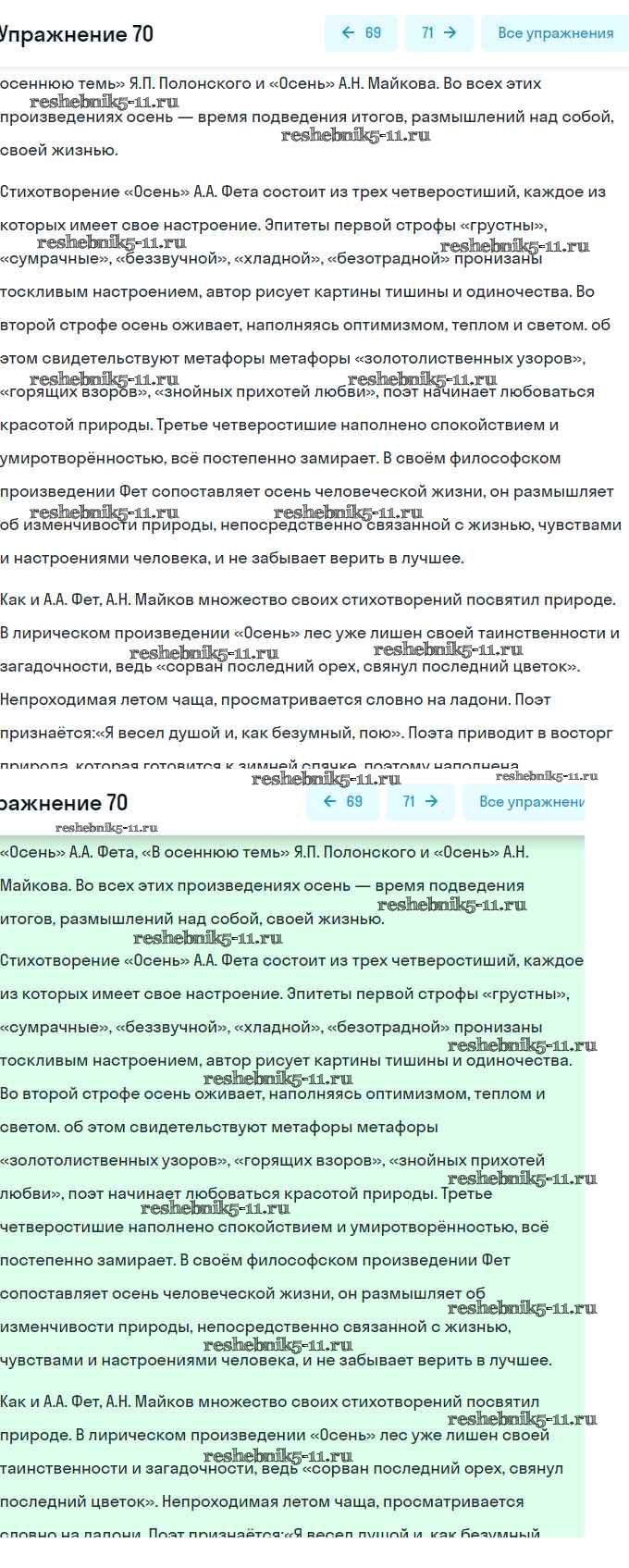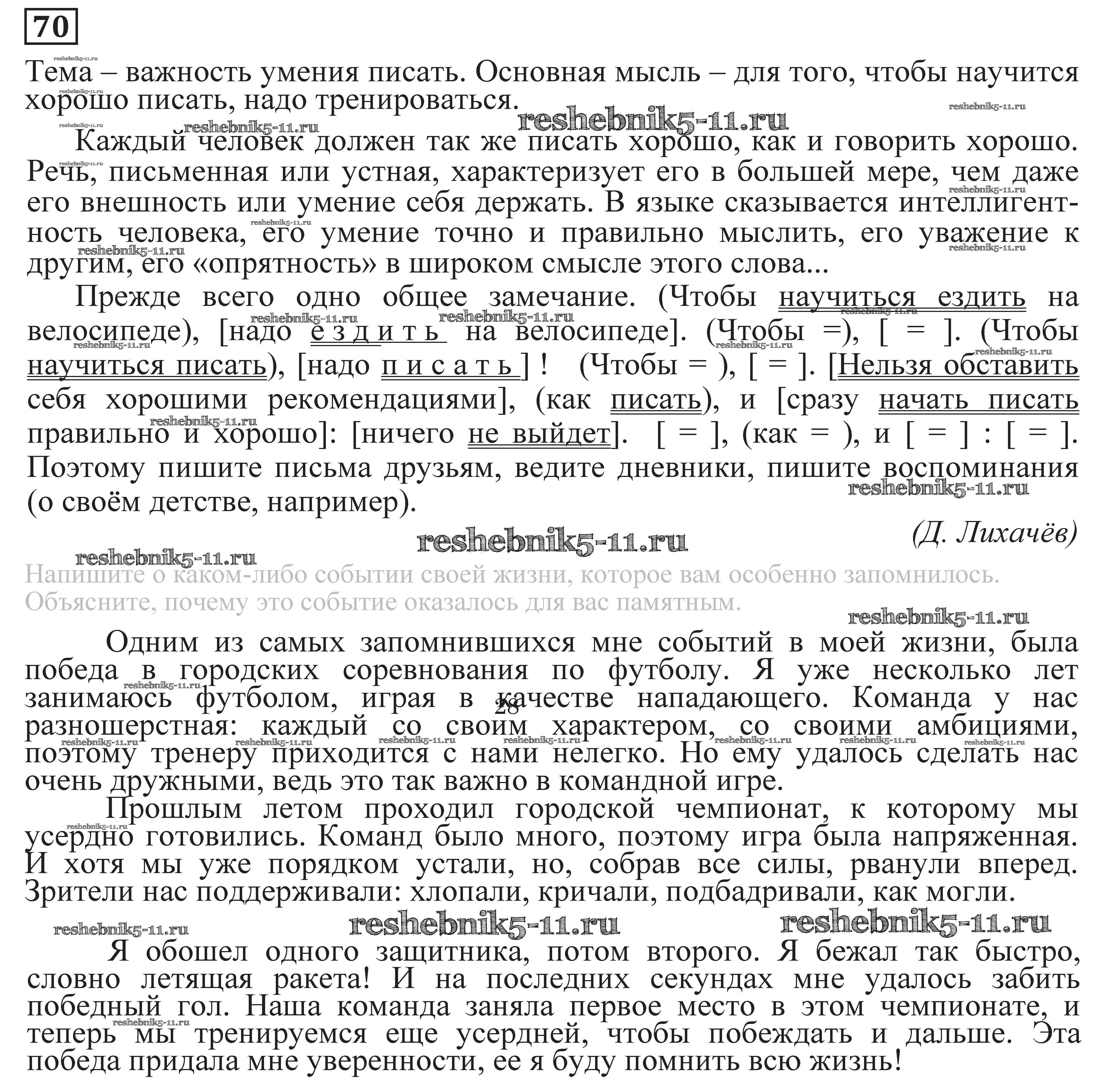 Готовая домашняя работа с ответами по Русскому языку за 9 класс Пичугов, Еремеева, Купалова Практика Просвещение 2022 - Упражнения 70