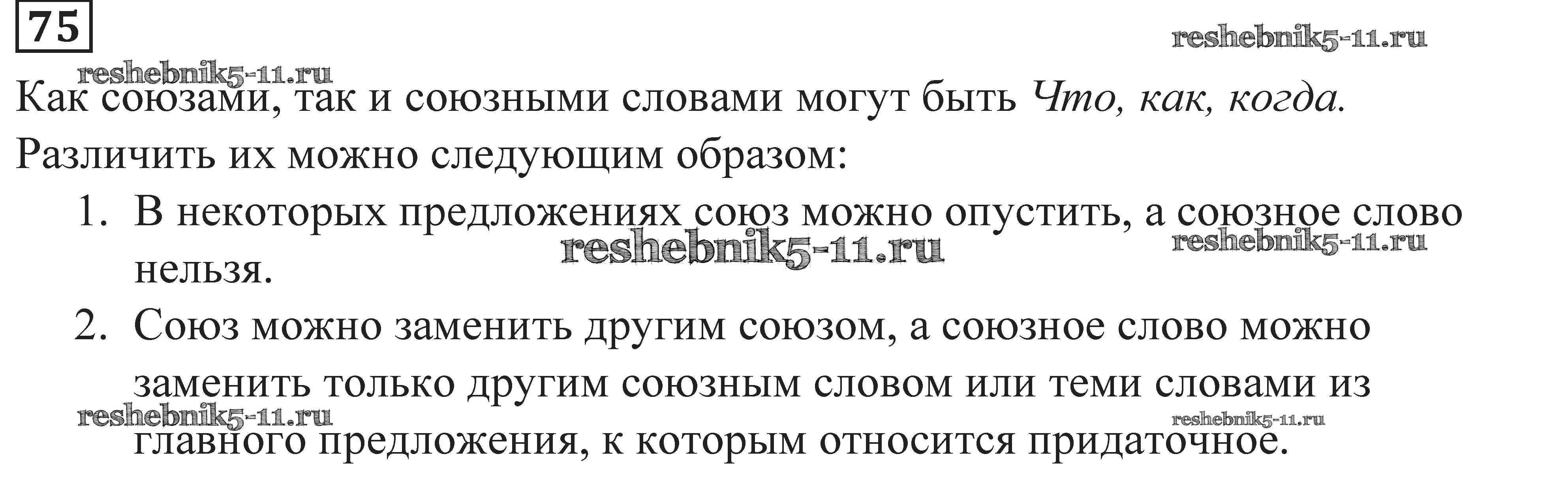 Готовая домашняя работа с ответами по Русскому языку за 9 класс Пичугов, Еремеева, Купалова Практика Просвещение 2022 - Упражнения 75