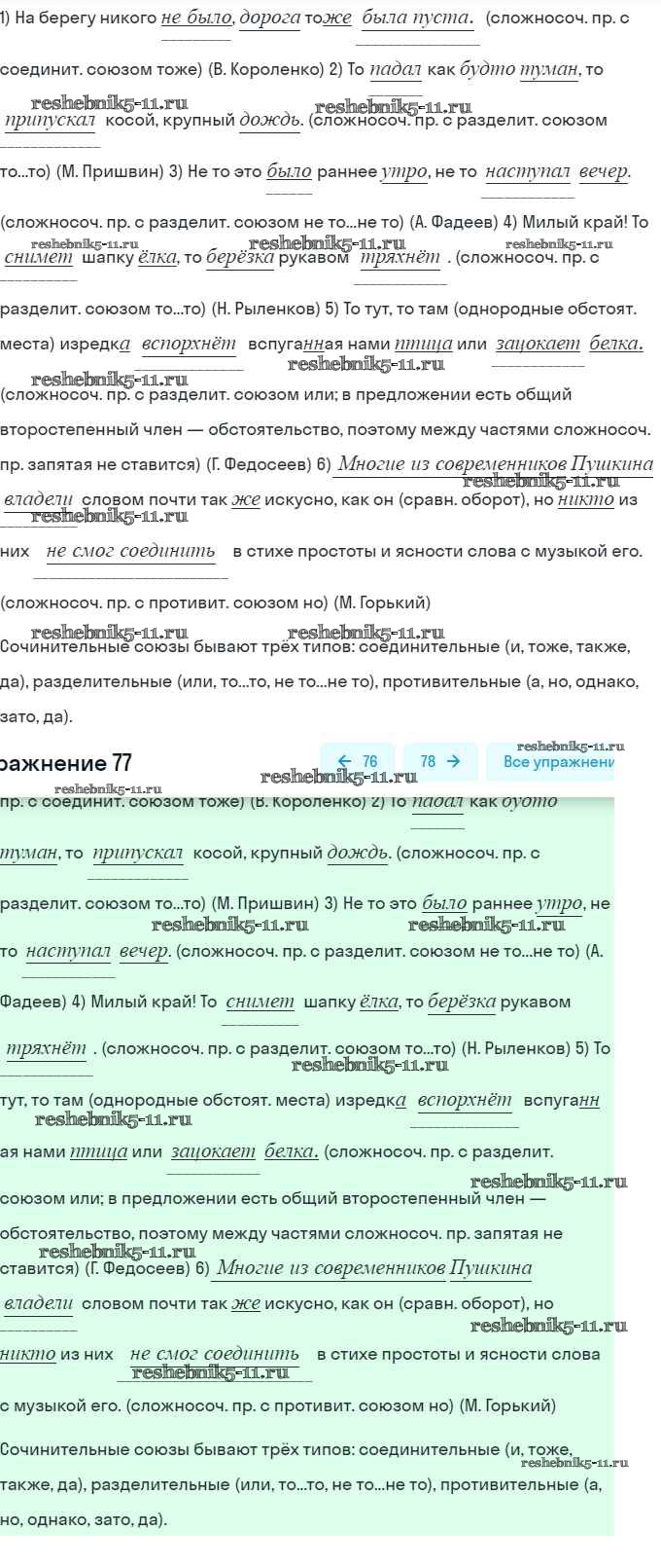 Готовая домашняя работа с ответами по Русскому языку за 9 класс Пичугов, Еремеева, Купалова Практика Просвещение 2022 - Упражнения 77