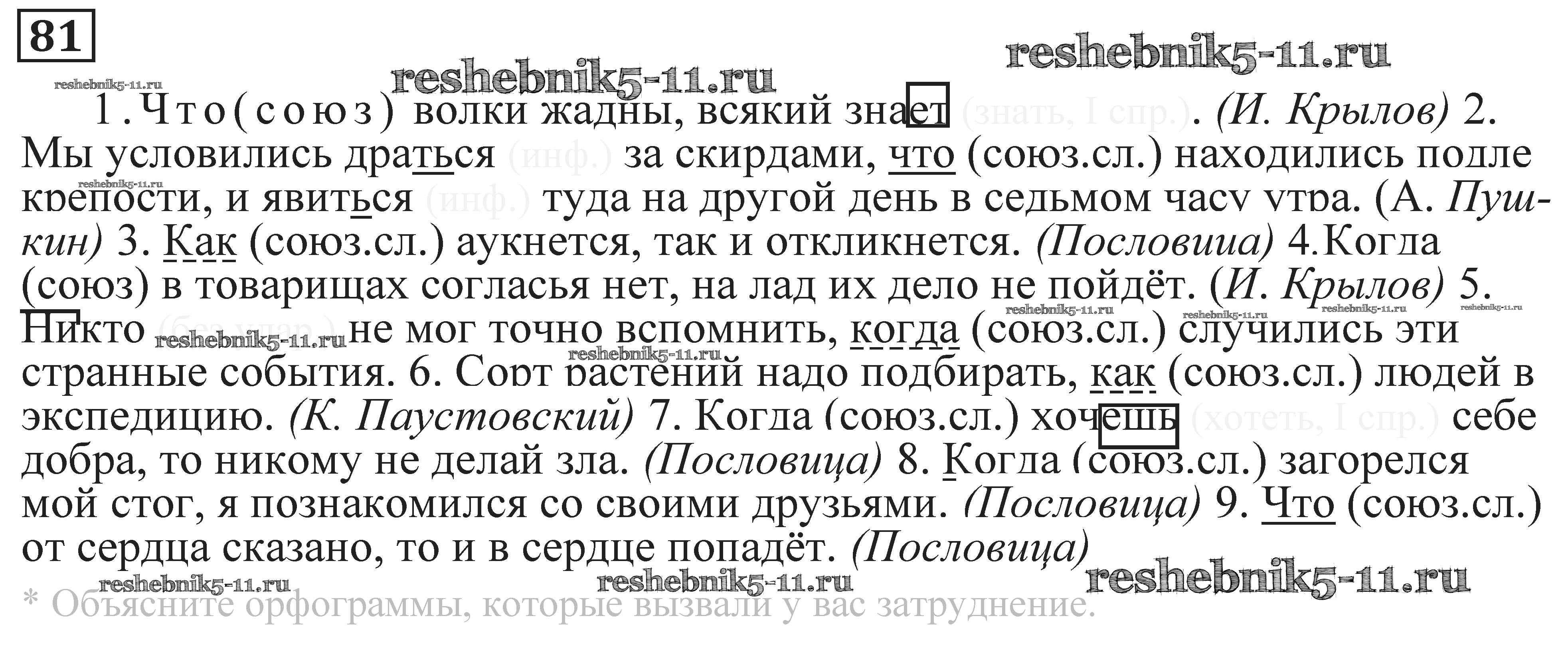 Готовая домашняя работа с ответами по Русскому языку за 9 класс Пичугов, Еремеева, Купалова Практика Просвещение 2022 - Упражнения 81