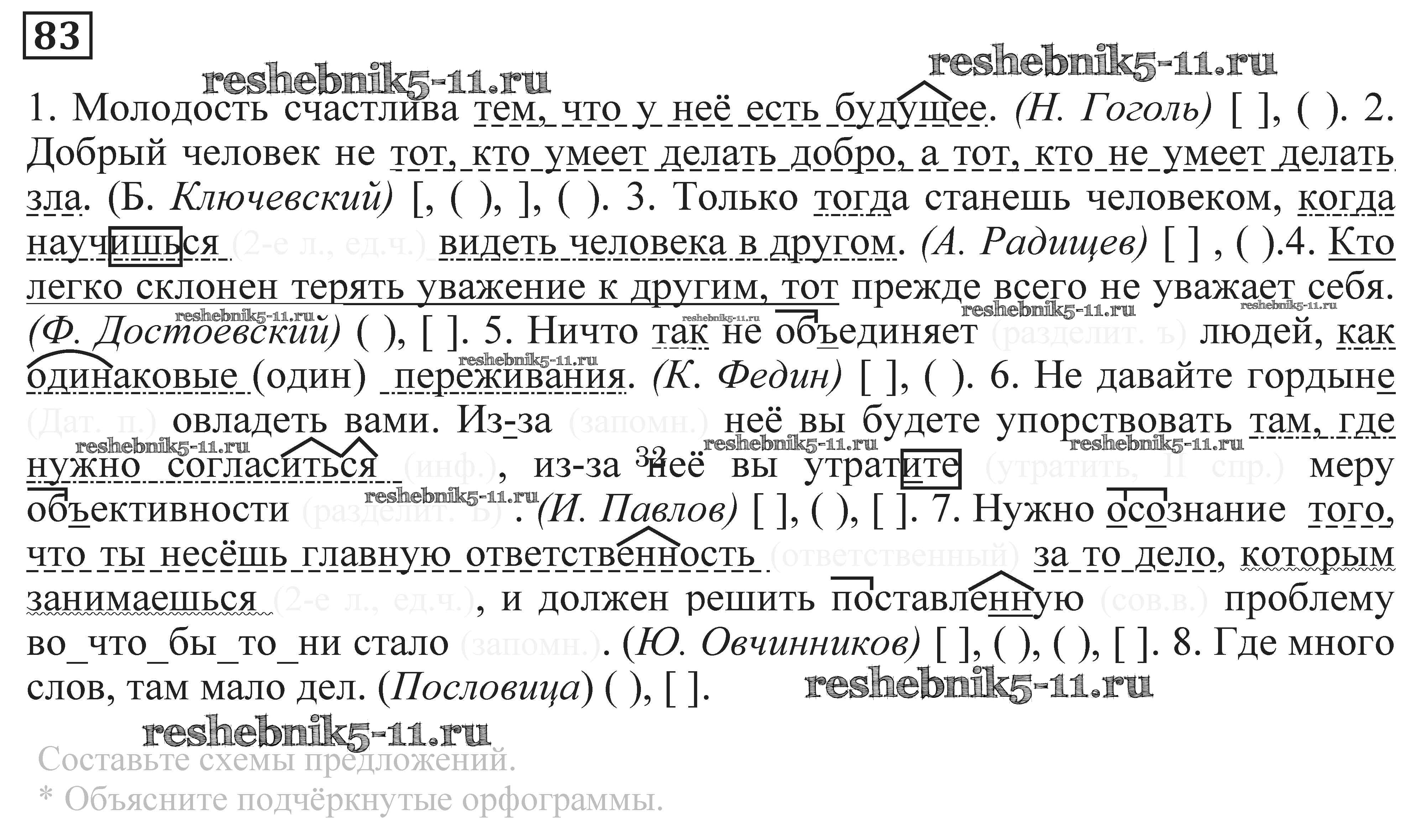Готовая домашняя работа с ответами по Русскому языку за 9 класс Пичугов, Еремеева, Купалова Практика Просвещение 2022 - Упражнения 83