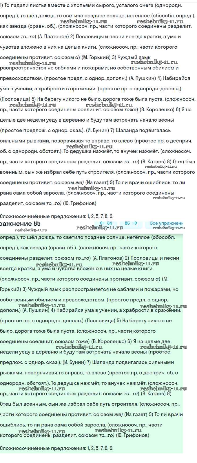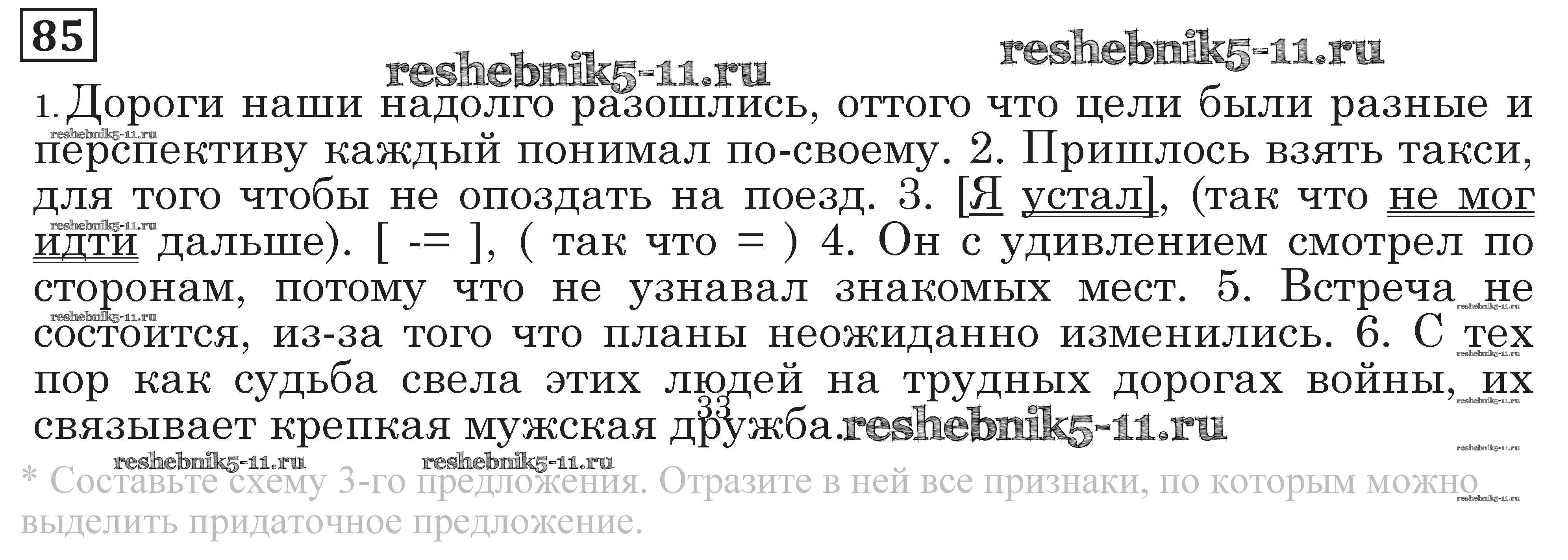 Готовая домашняя работа с ответами по Русскому языку за 9 класс Пичугов, Еремеева, Купалова Практика Просвещение 2022 - Упражнения 85