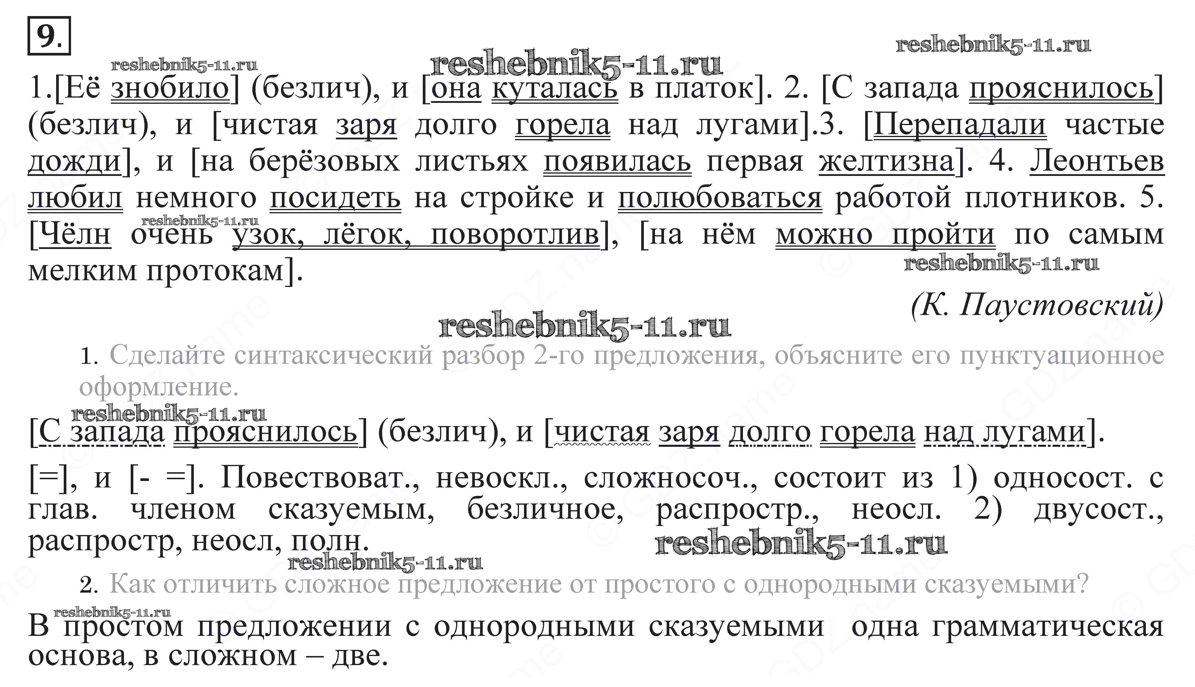 Готовая домашняя работа с ответами по Русскому языку за 9 класс Пичугов, Еремеева, Купалова Практика Просвещение 2022 - Упражнения 9