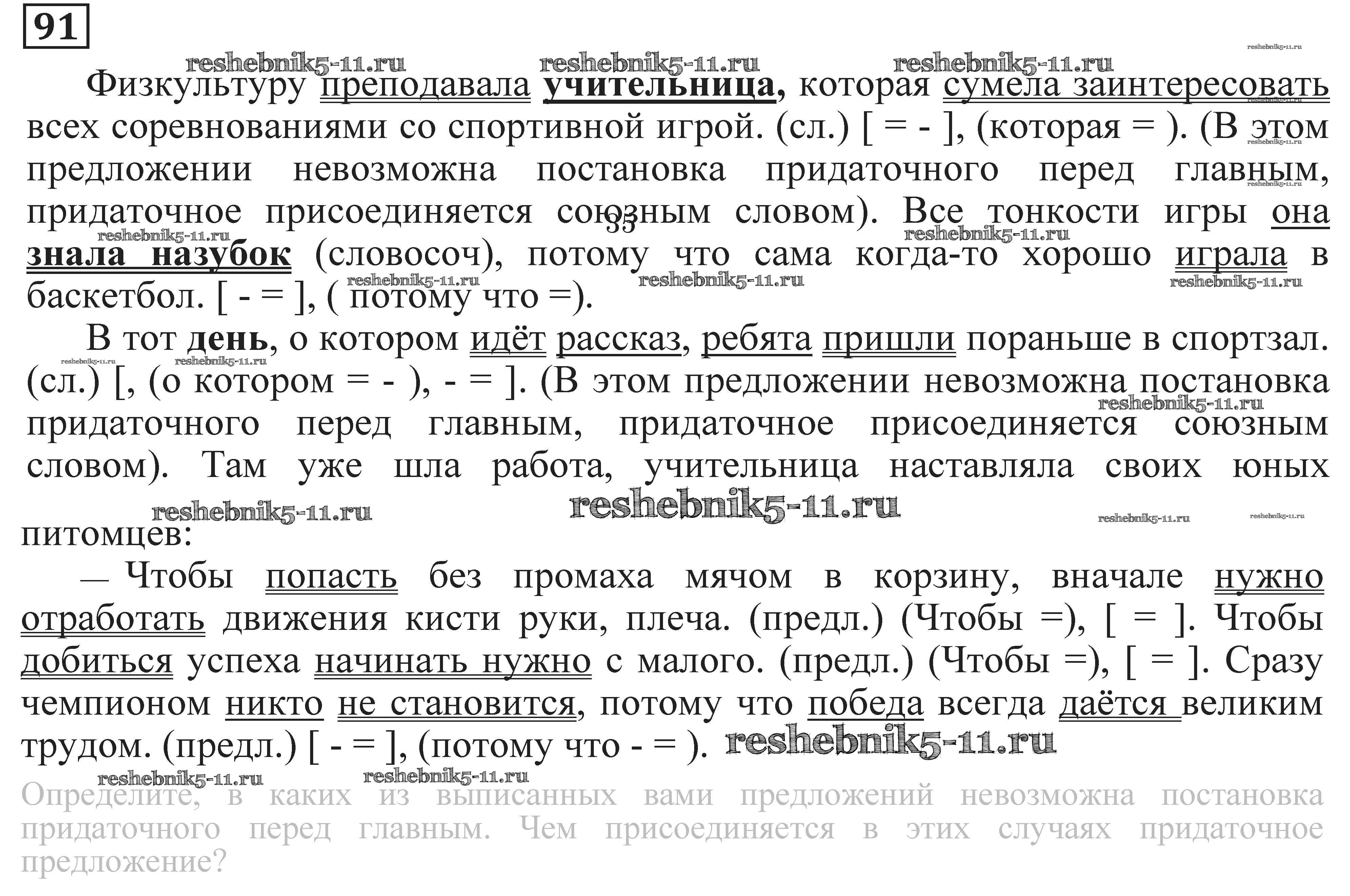 Готовая домашняя работа с ответами по Русскому языку за 9 класс Пичугов, Еремеева, Купалова Практика Просвещение 2022 - Упражнения 91