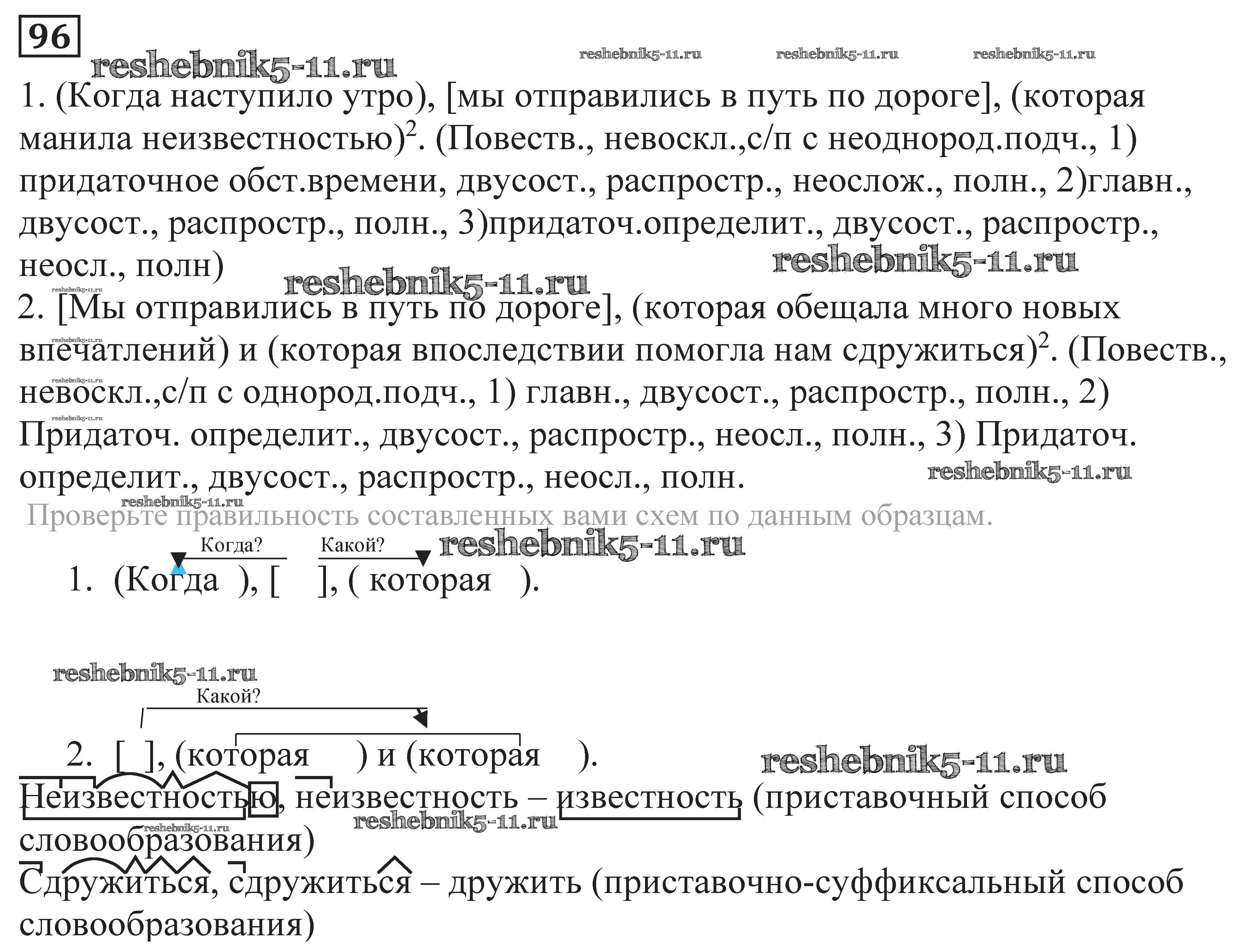 Готовая домашняя работа с ответами по Русскому языку за 9 класс Пичугов, Еремеева, Купалова Практика Просвещение 2022 - Упражнения 96