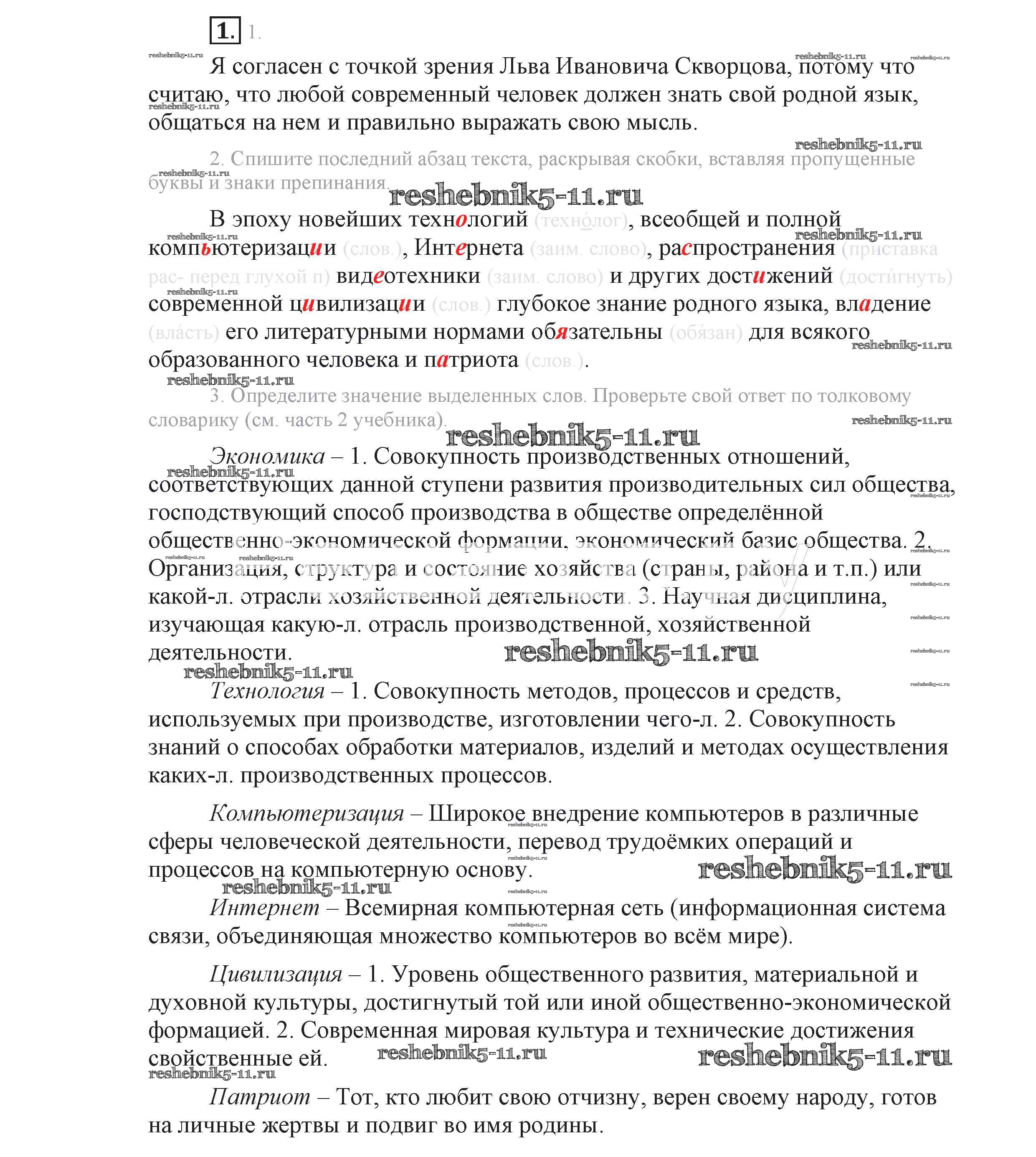 Готовая домашняя работа с ответами по Русскому языку за 9 класс Львова, Львов Учебник Мнемозина 2016 ФГОС - Упражнения 1