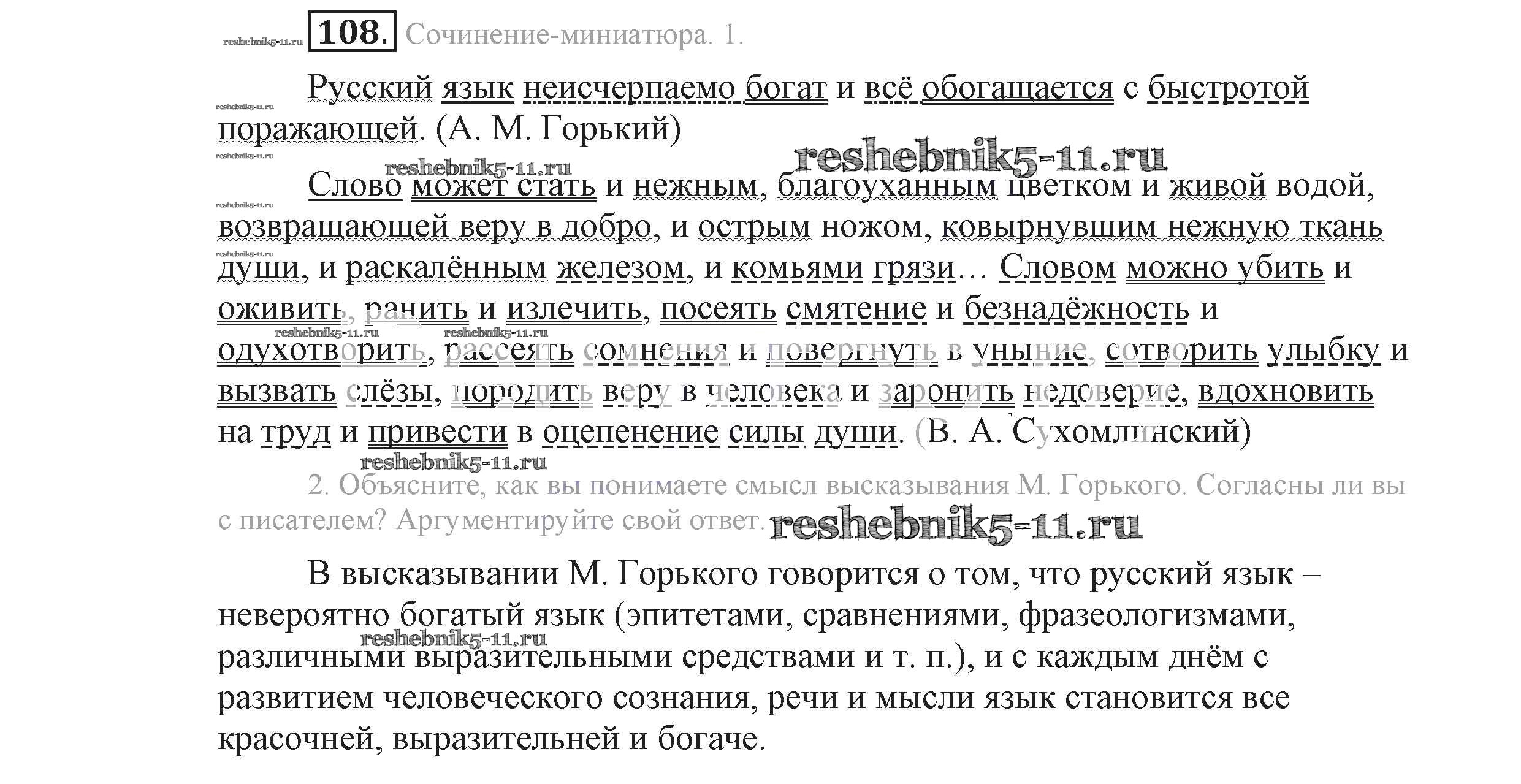 Готовая домашняя работа с ответами по Русскому языку за 9 класс Львова, Львов Учебник Мнемозина 2016 ФГОС - Упражнения 108