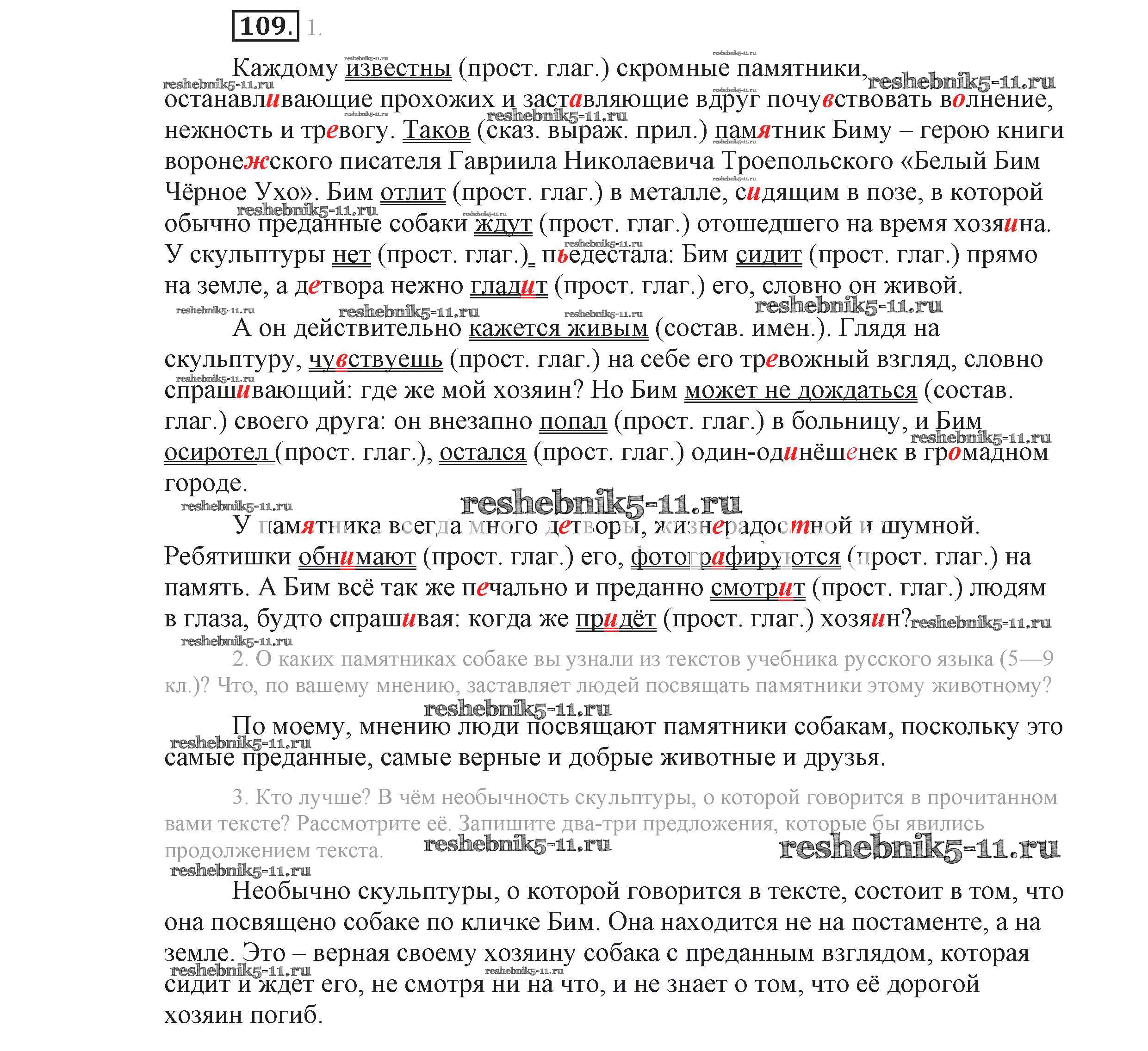 Готовая домашняя работа с ответами по Русскому языку за 9 класс Львова, Львов Учебник Мнемозина 2016 ФГОС - Упражнения 109