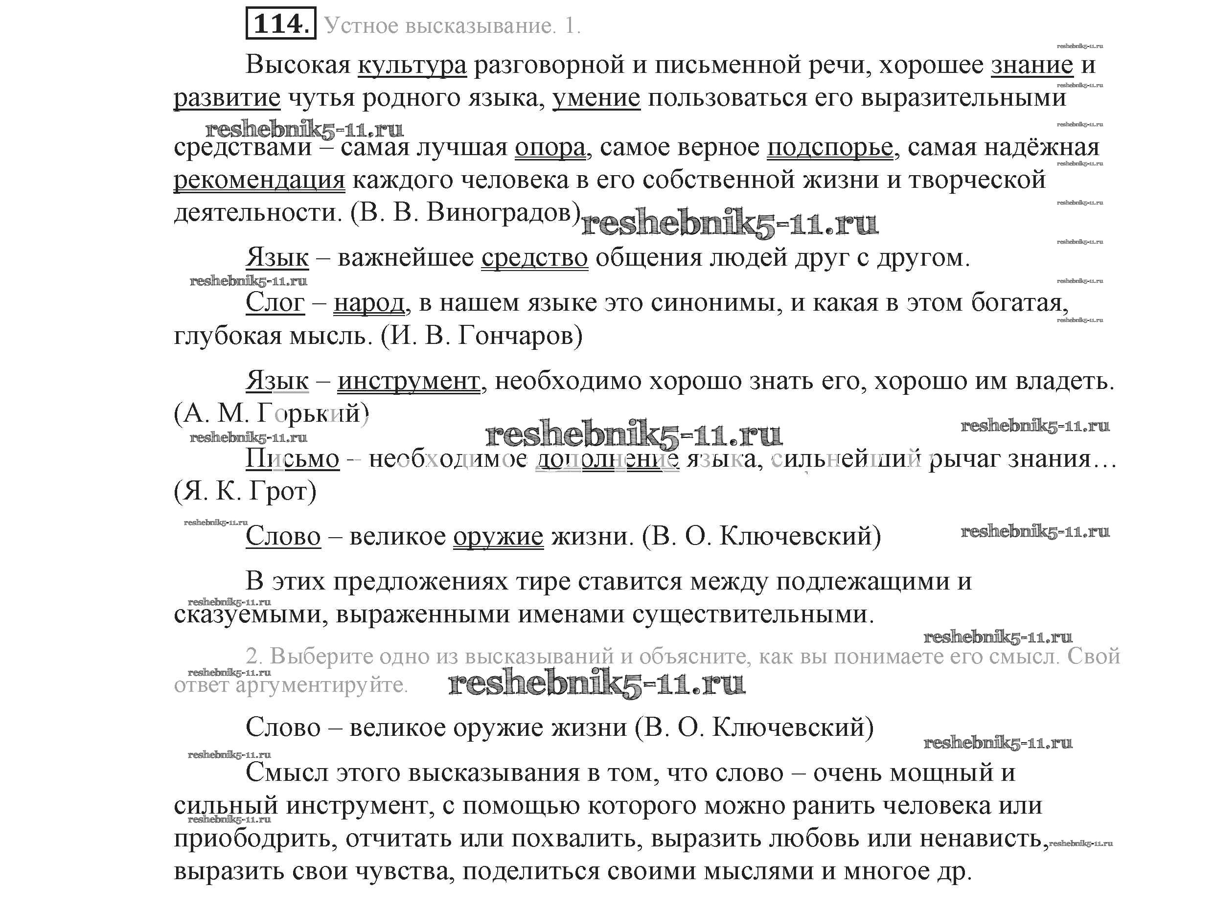 Готовая домашняя работа с ответами по Русскому языку за 9 класс Львова, Львов Учебник Мнемозина 2016 ФГОС - Упражнения 114