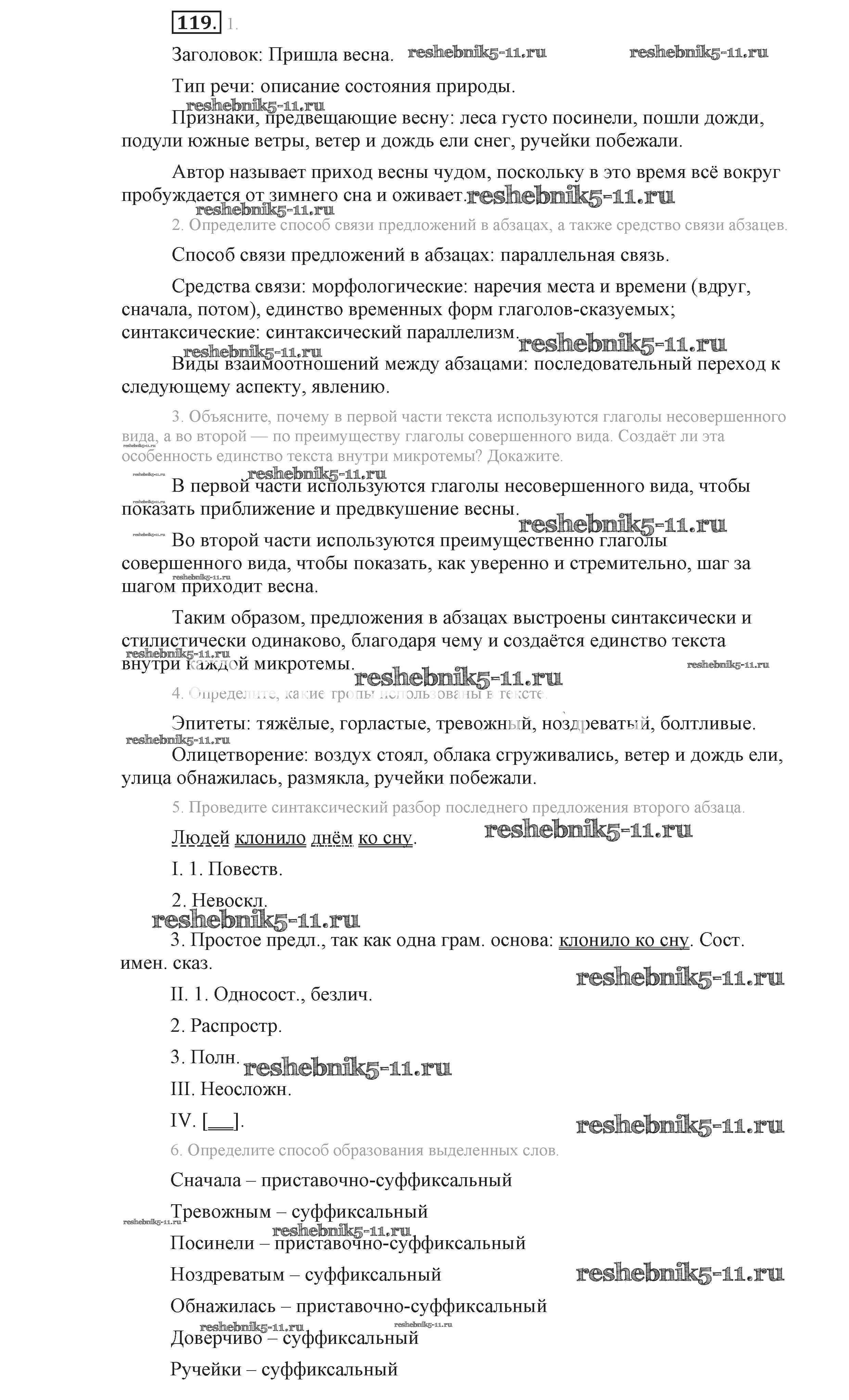 Готовая домашняя работа с ответами по Русскому языку за 9 класс Львова, Львов Учебник Мнемозина 2016 ФГОС - Упражнения 119