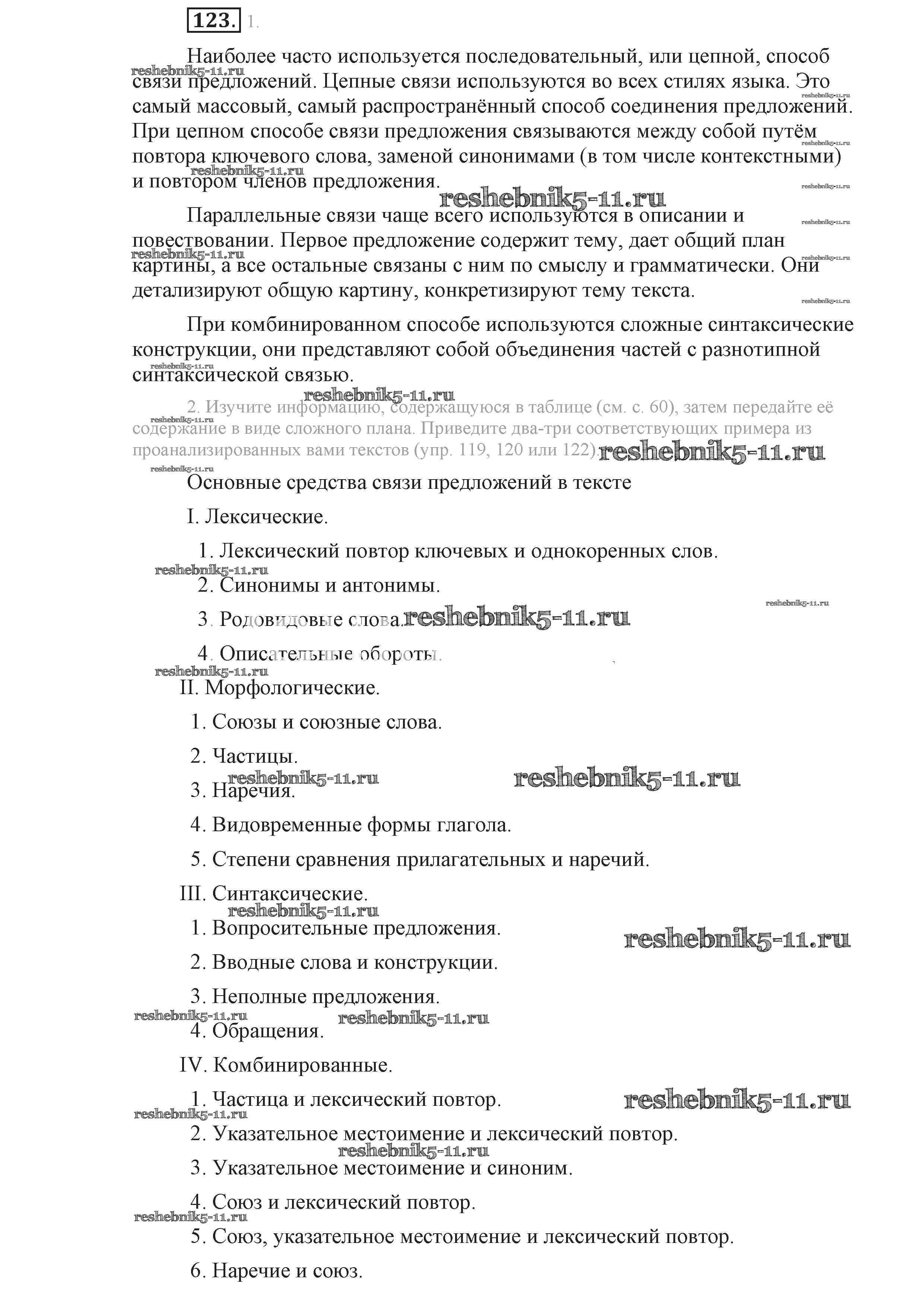 Готовая домашняя работа с ответами по Русскому языку за 9 класс Львова, Львов Учебник Мнемозина 2016 ФГОС - Упражнения 123