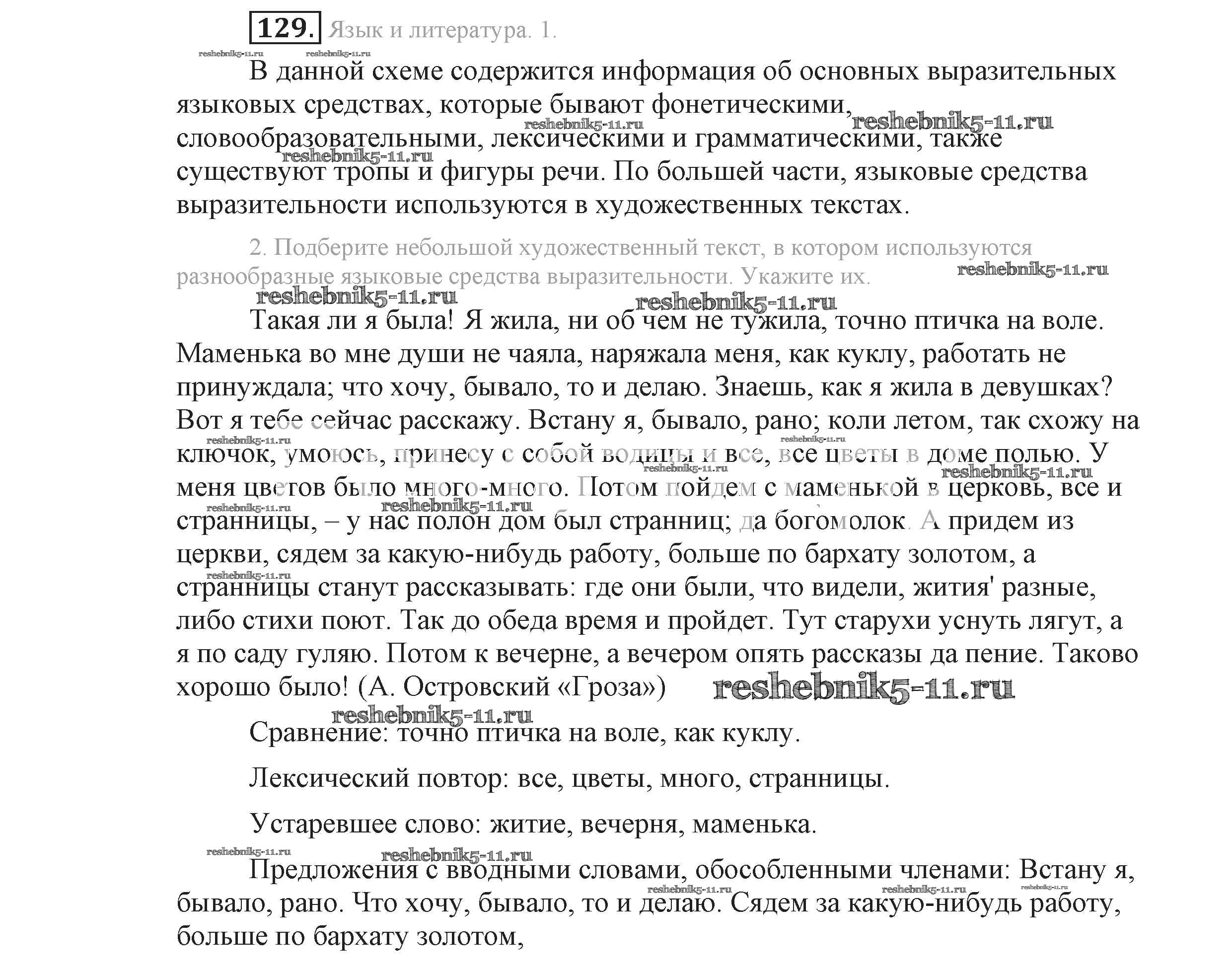 Готовая домашняя работа с ответами по Русскому языку за 9 класс Львова, Львов Учебник Мнемозина 2016 ФГОС - Упражнения 129