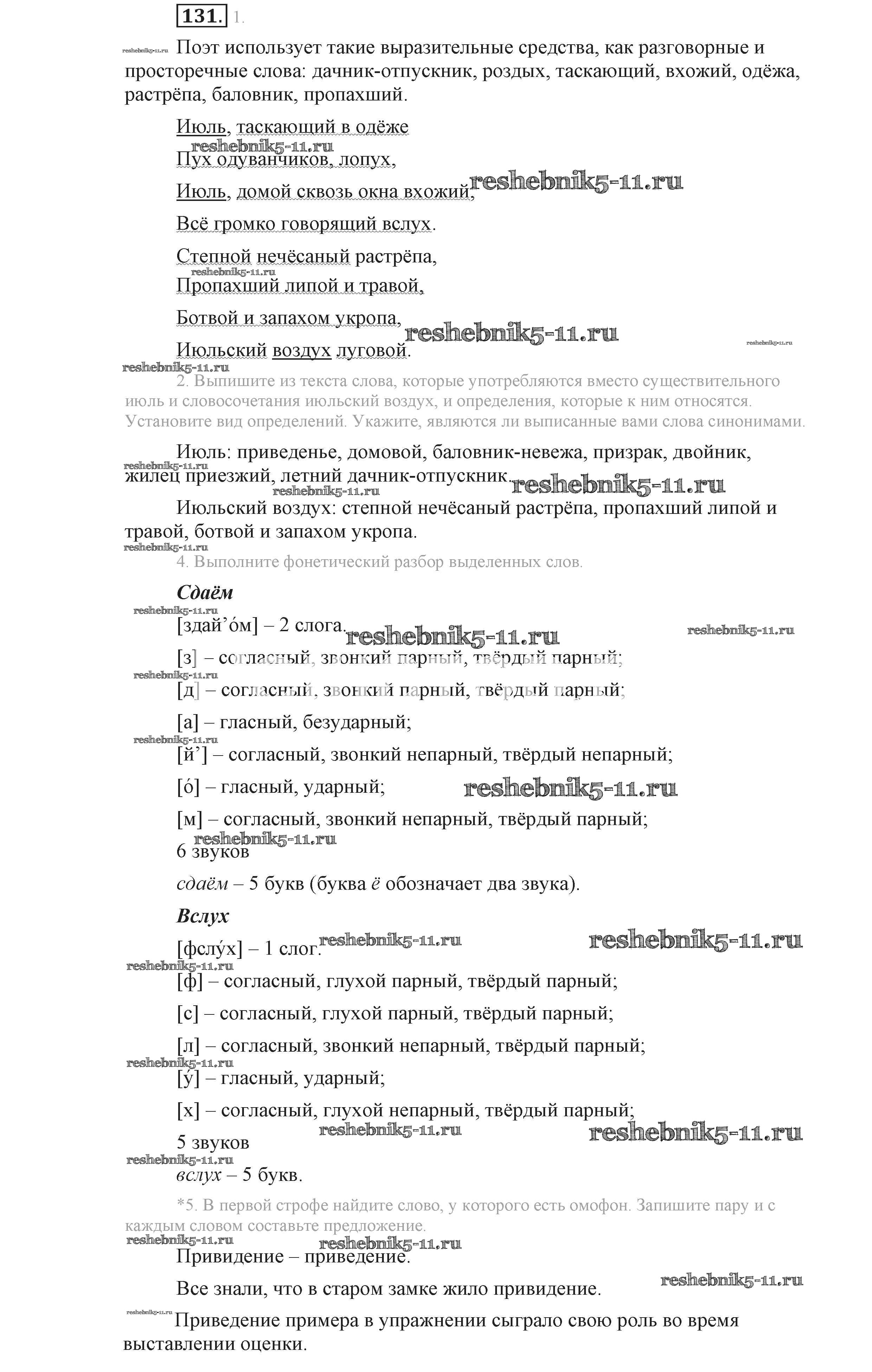Готовая домашняя работа с ответами по Русскому языку за 9 класс Львова, Львов Учебник Мнемозина 2016 ФГОС - Упражнения 131