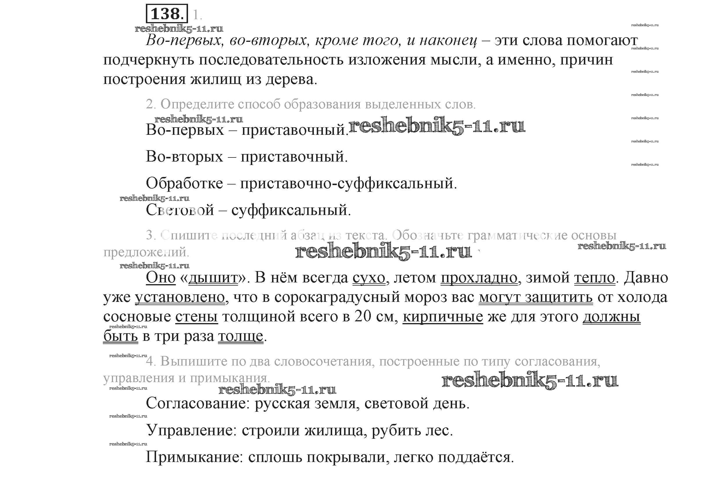 Готовая домашняя работа с ответами по Русскому языку за 9 класс Львова, Львов Учебник Мнемозина 2016 ФГОС - Упражнения 138