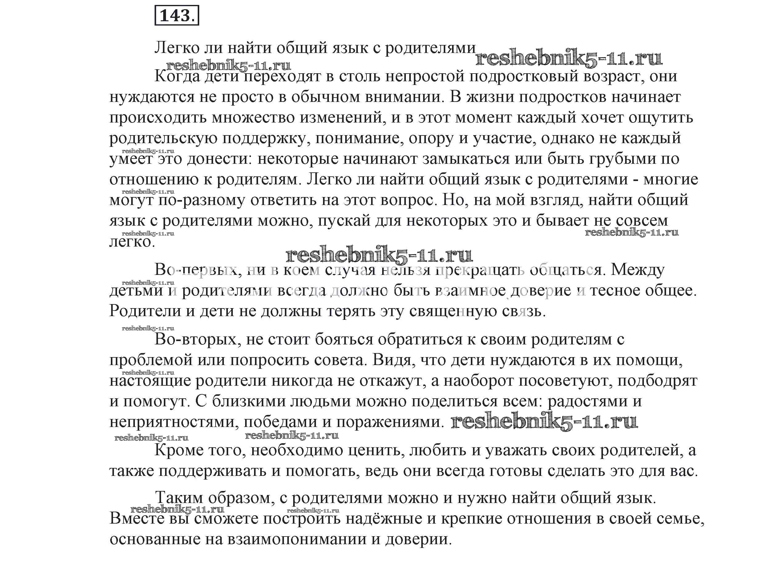 Готовая домашняя работа с ответами по Русскому языку за 9 класс Львова, Львов Учебник Мнемозина 2016 ФГОС - Упражнения 143